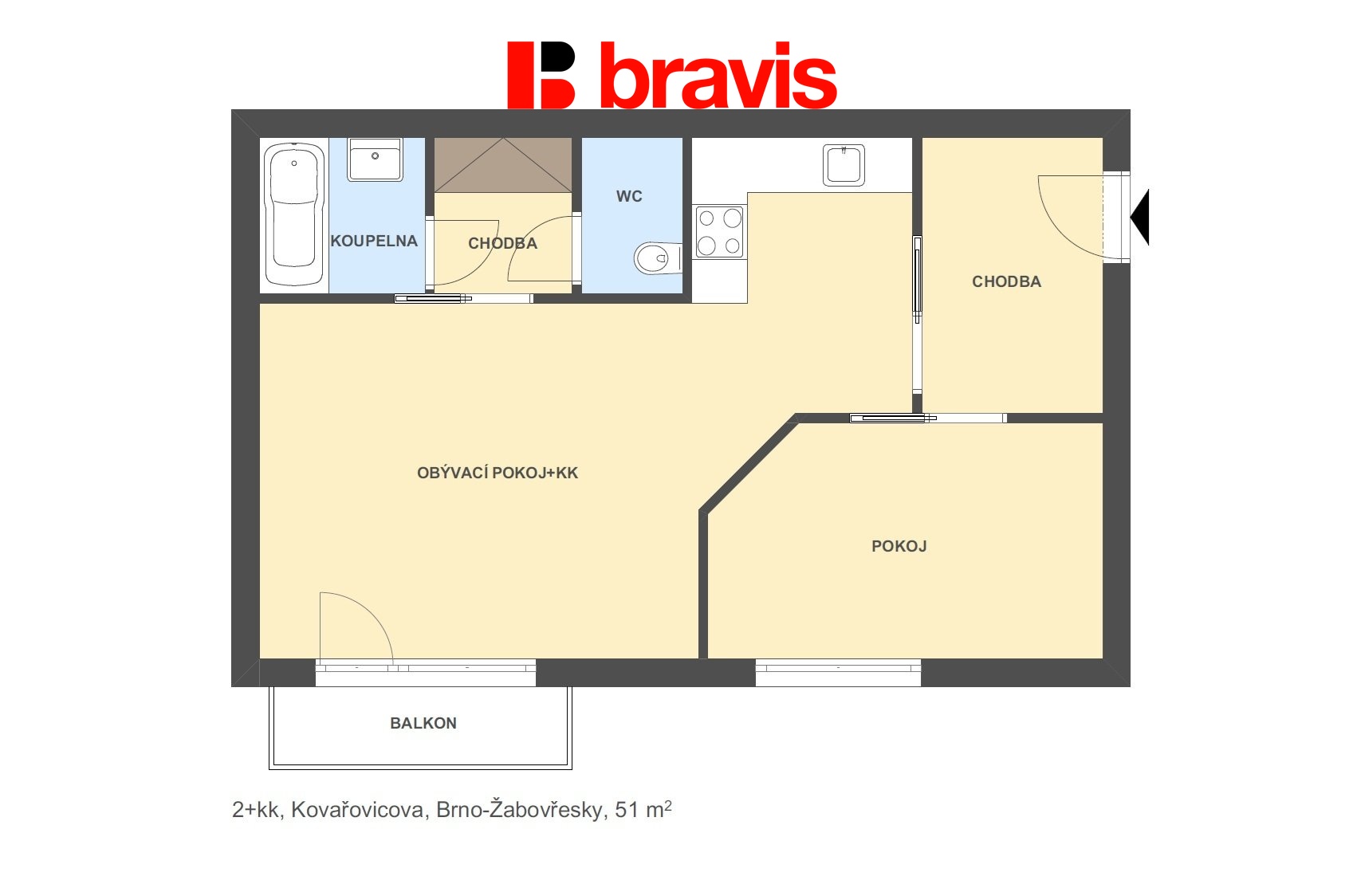 Ve výhradním zastoupení majitele nabízíme k dlouhodobému pronájmu byt o dispozici 2+kk na ulici Kovařovicova v městské části Brno- Žabovřesky.