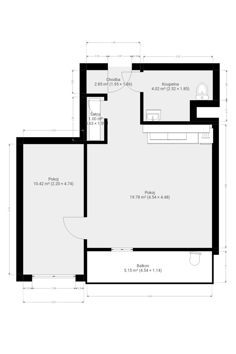 | Dispozice/podlahová plocha: | 2+kk/40 m² |