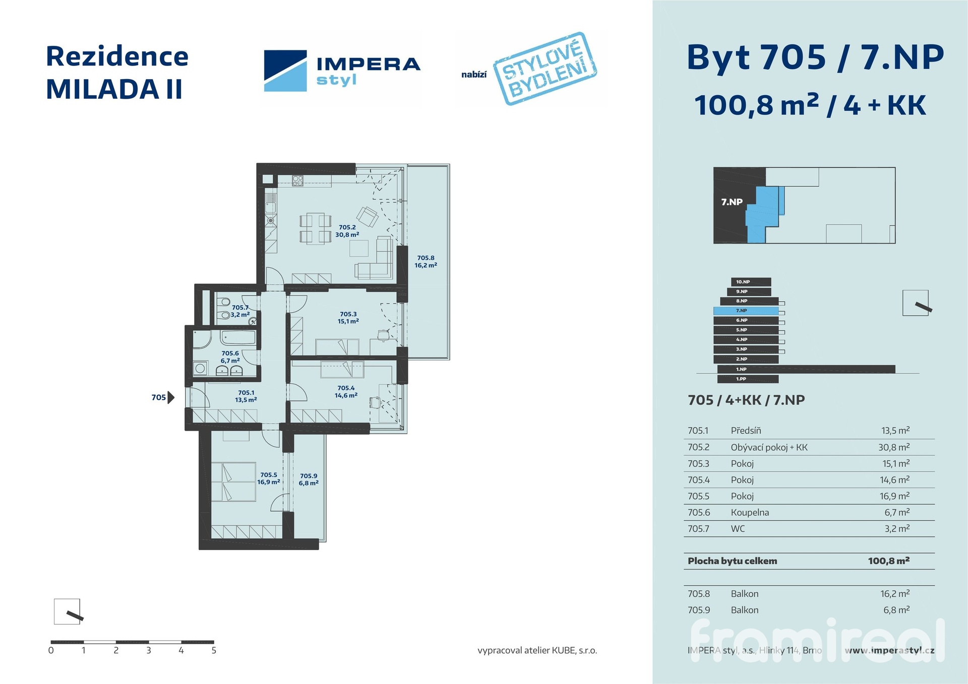Byt zaujme svou velkorysou dispozicí, kvalitním zpracováním a klidným výhledem do vnitrobloku.