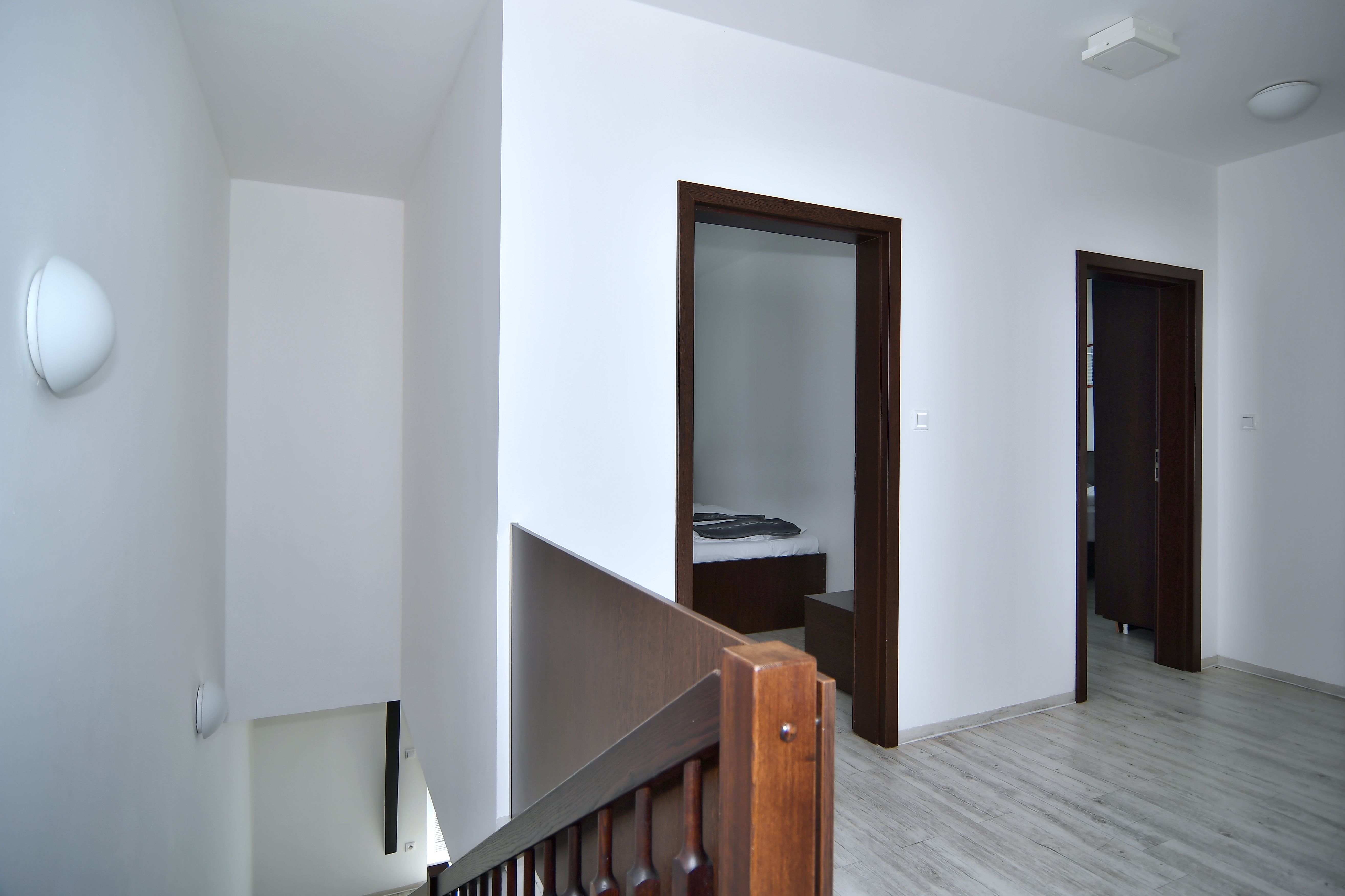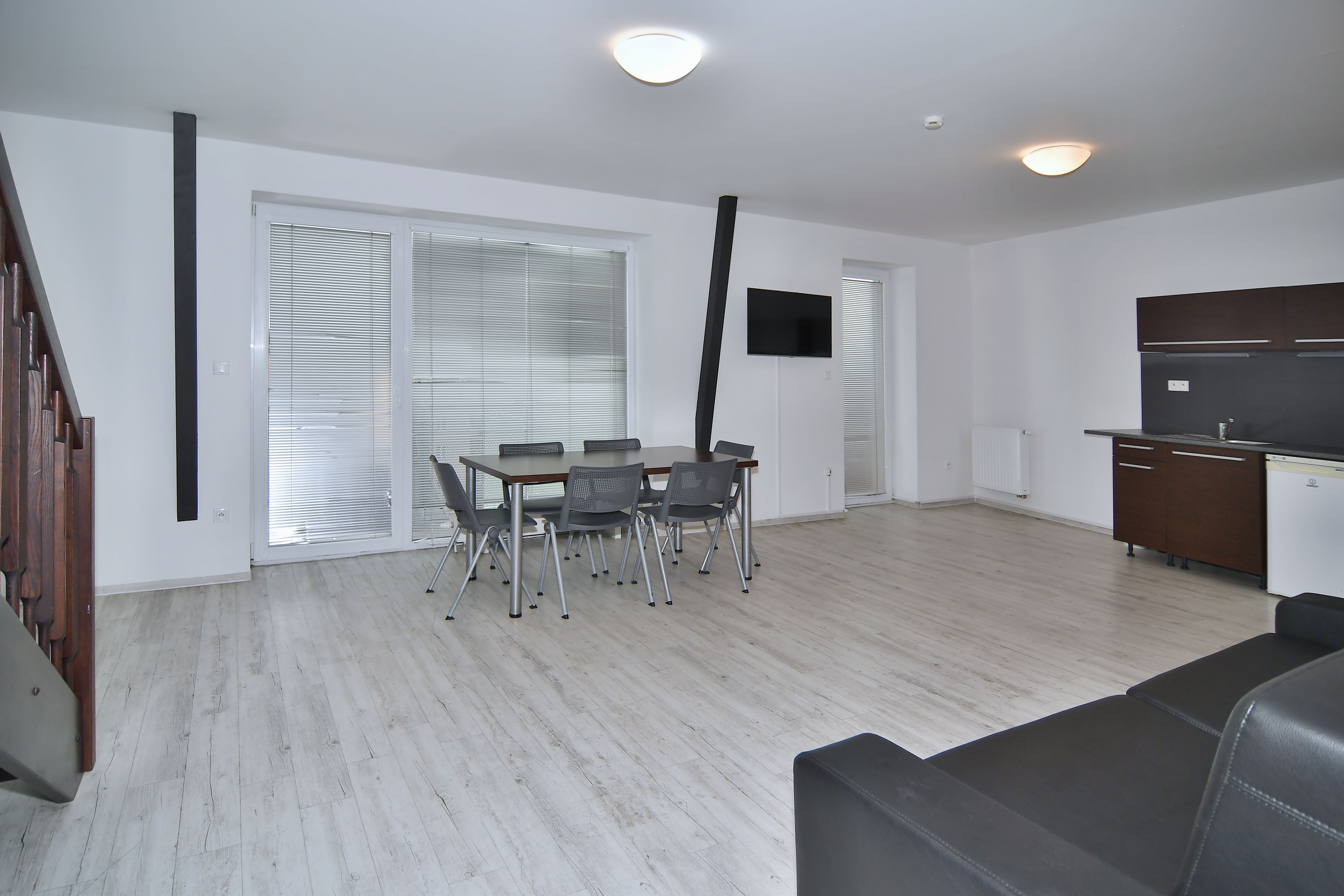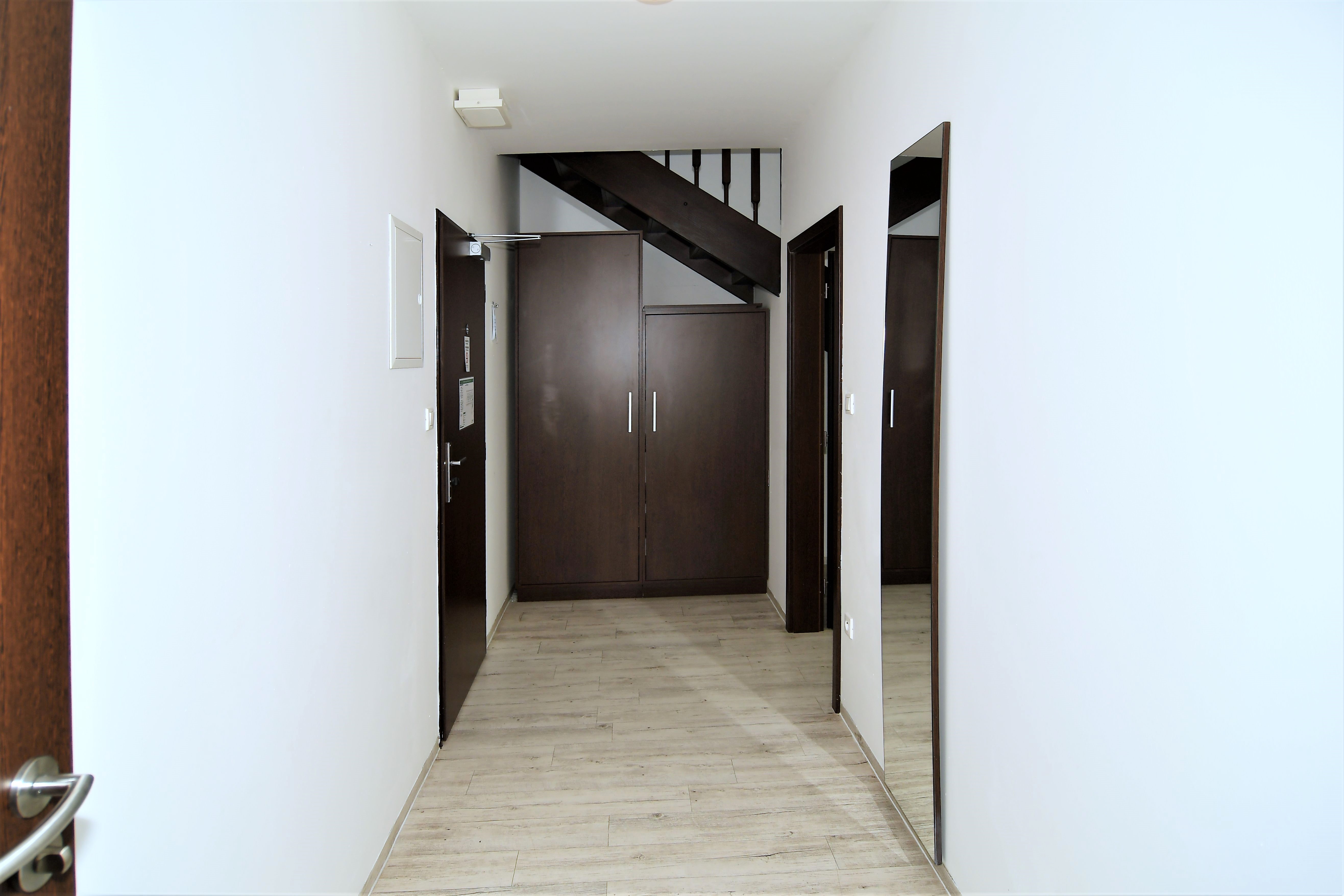Byt je o výměře 162 m2 a nachází se v 5. podlaží. Budova je opatřena výtahem i schodištěm. Byt má vstupní chodbu vybavenou šatní skříní, celoplošným zrcadlem a pokojovým trezorem. Z předsíně je vstup na samostané WC. Dále byt disponuje obývací částí s moderní vybavenou kuchyňskou linkou s pracovní deskou, podstavnou lednicí indesit, vestavěnou mikrovlnou trouba s grilem a horkovzdušnou troubou, varnou konvicí a jídelní soupravou s nádobím pro 6 osob. Pokoj je vybavený jídelním stolem se 6 židlemi, pracovním stolem s kancelářskou židlí a smart TV. Z pokoje je vstup na balkon. V horním patře se nachází dvě samostatné ložnice, v každé z nich jsou dvě komfortní postele, šatní skříň a pracovní stůl s židlí. Z obou ložnic je přístup na prostornou terasu s posezením a výhledem na Petrov a Špilberk. Koupelna v horní části je s rohovou vanou, umyvadlem, bidetem, WC a topným žebříkem. WiFi připojení je v ceně pronájmu. Celý byt je kompletně klimatizován a vybaven klimatizačními jednotkami značky Samsung včetně dálkového ovládání.