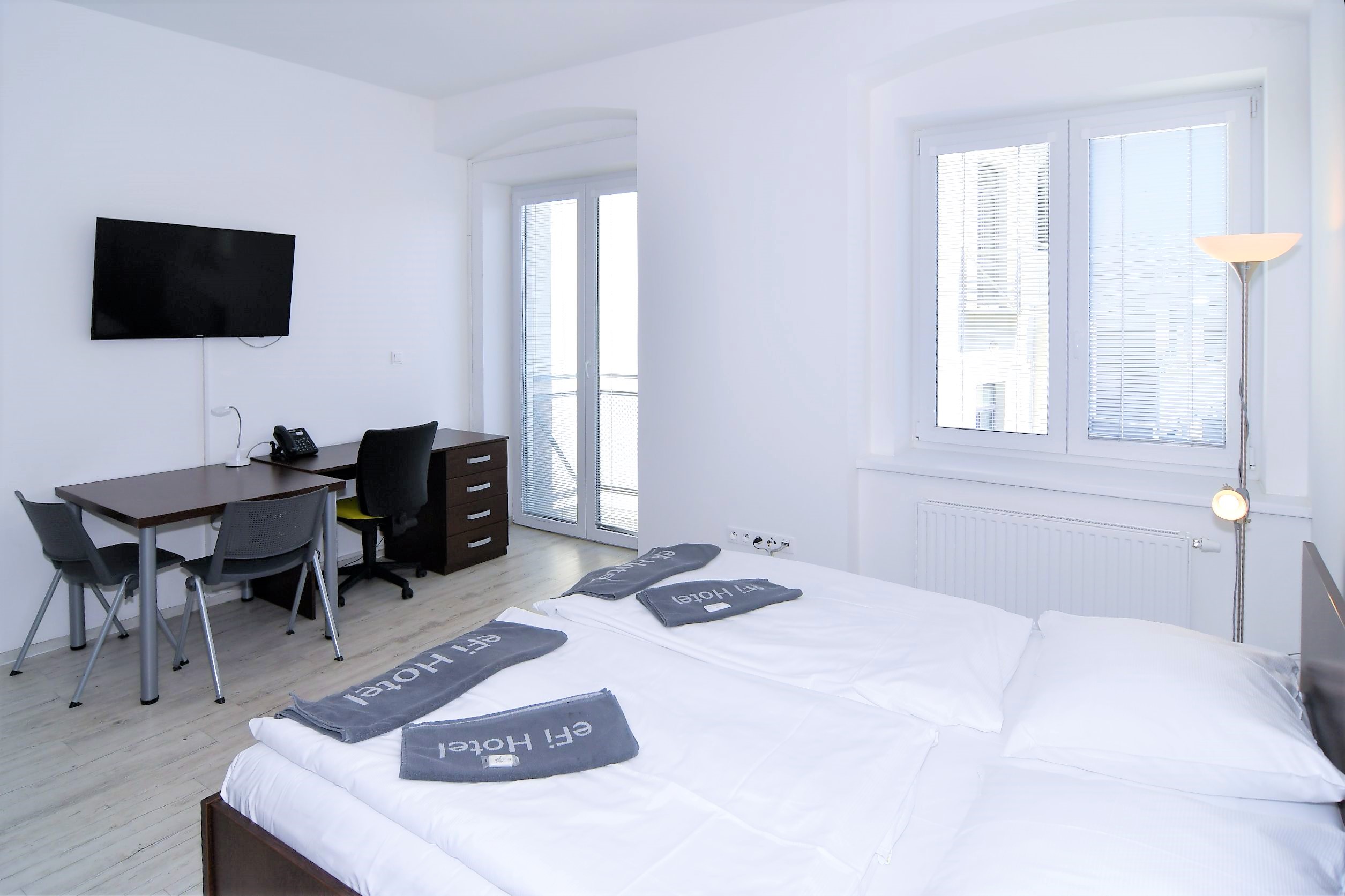 Kompletně zařízený byt. Pronájem na dobu od jednoho měsíce. Možnost pronájmu parkovacího místa za 1 700 Kč. Možnost pronájmu pračky za 500 Kč. V případě pronájmu firmě, možnost odpočtu DPH. Pro studijní i pracovní pobyty nabízíme pronájem plně zařízeného bytu 1+kk včetně kuchyňské linky a elektrospotřebičů v hotelovém komplexu eFi Palace Hotel v centru Brna.