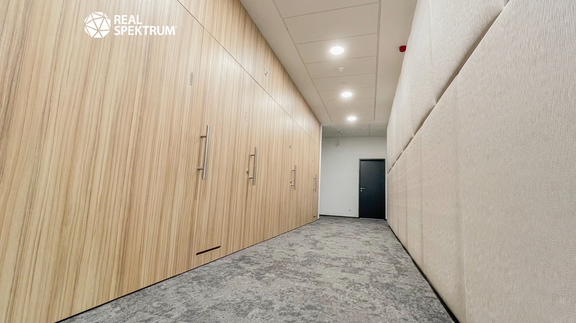 Zdvojená podlaha, veškeré komunikační kabely rozvedeny k jednotlivým pracovním místům, žaluzie, klimatizace, zátěžové koberce, otvíratelná okna, vysokorychlostní připojení k internetu.