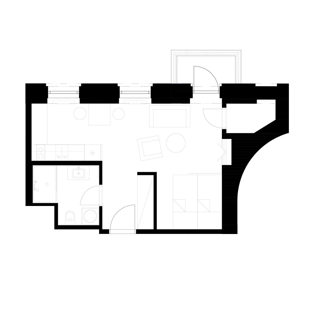 Apartmán se pronajímá částečně vybavený – k dispozici je nová kuchyňská linka s elegantní kombinací černé a dřeva, včetně spotřebičů (myčka, lednice, varná deska, trouba, mikrovlnka). Obytný prostor působí vzdušně díky vysokým oknům a světlým podlahám. Koupelna je moderní a prostorná – sprchový kout, umyvadlová skříňka, toaleta a pračka.