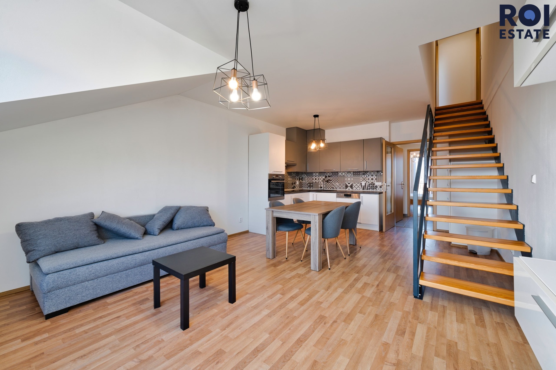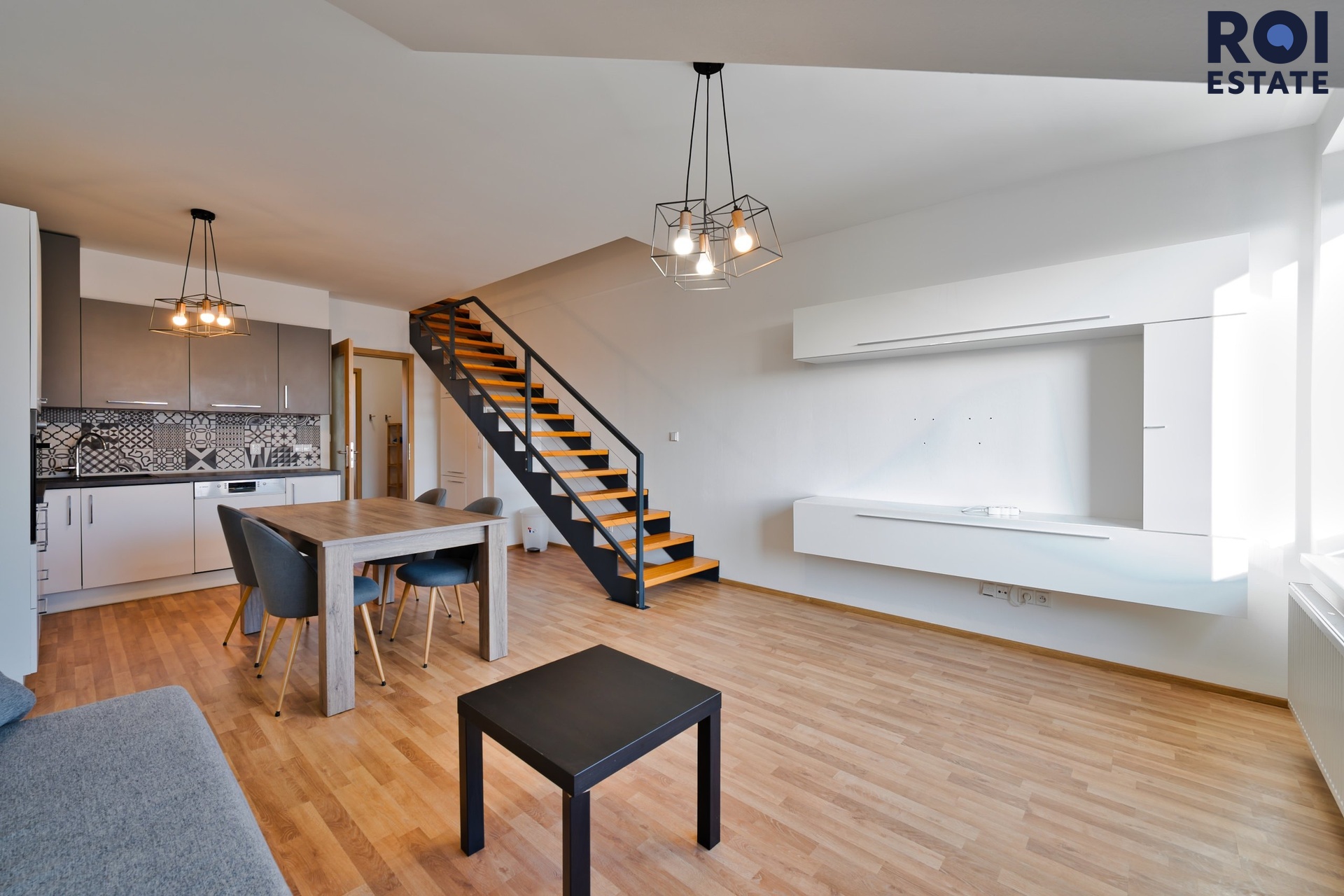 Pronájem mezonetu 3+kk s balkónem v Brně na Táborské – novostavba s garáží i sklepem, 77m2