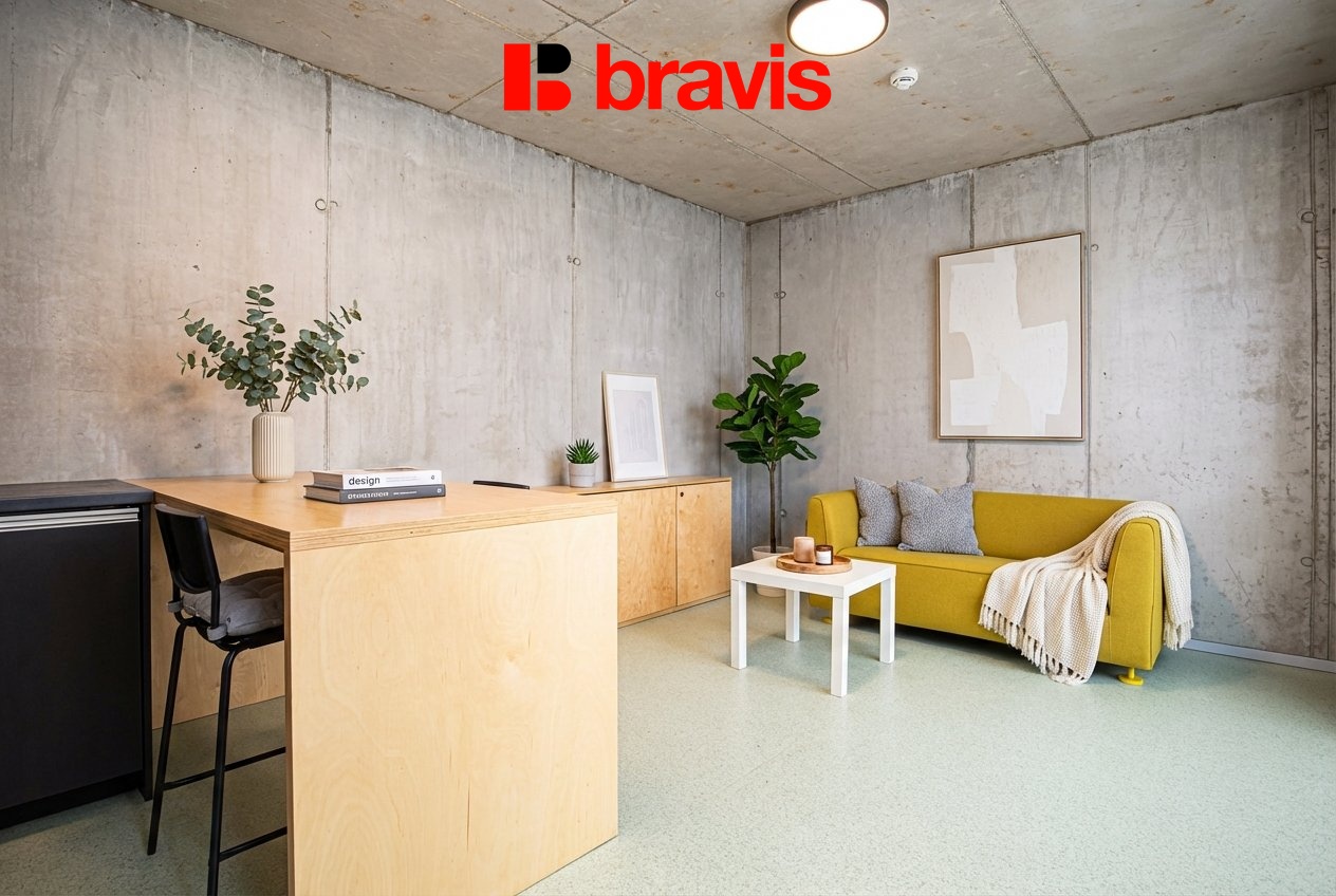 Kompletně zařízené studio o velikosti 51 m² je skvělou volbou pro studenty či začínající pracující. Lze pronajmout i krátkodobě již od jednoho měsíce.