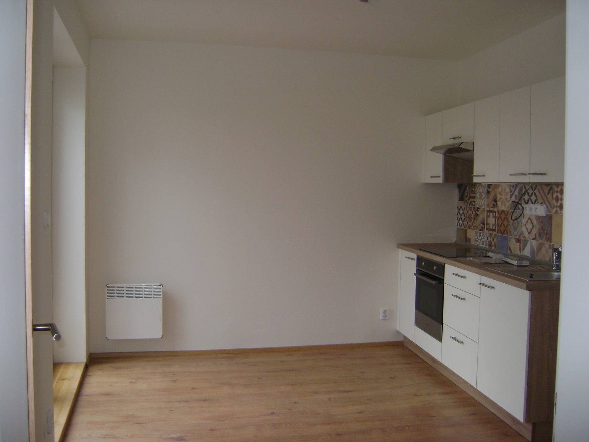 Nová kuchyňská linka se spotřebiči: sklokeramická varná deska, trouba, digestoř, lednice s mrazákem, pračka, jídelní stůl se židlemi, 2 komody. Jinak nezařízeno. Koupelna s vanou je spojena s WC. Veškeré osvětlení v bytě je LED - úspora pro nájemníky. Ložnice je vybavena klimatizací.