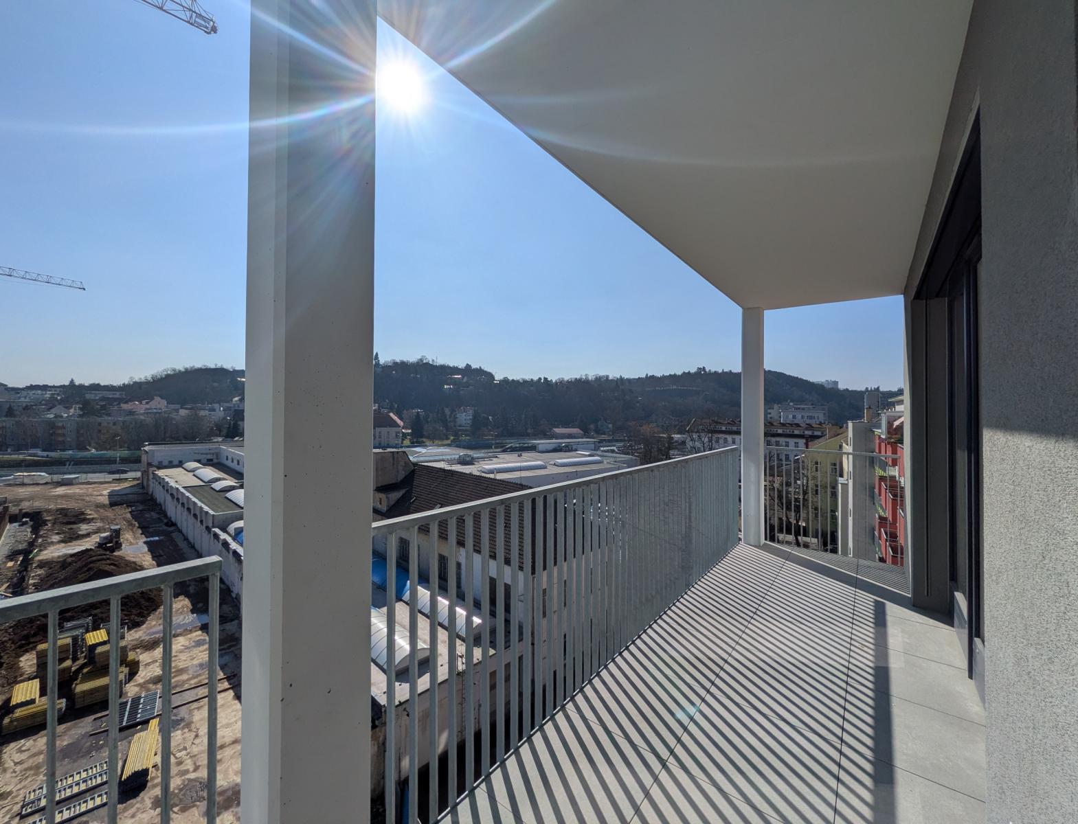 V novostavbě bytového domu Rybářka nabízíme k pronájmu byt 3+kk s podlahovou plochou 76 m2+ balkony 11m2 a 2m2, se zděnou sklepní kójí 3m2 a možností pronájmu dvou garážových stání v 1.PP domu. Částečně zařízený byt s orientací JV (obývací pokoj a velký balkon) a SZ (ložnice, pokoj) je umístěn v 7.NP/7 nyní dokončené novostavby. Jedná se tedy o první pronájem. Z prostorné předsíně vybavené šatními skříněmi s dostatkem úložného prostoru jsou přístupné ostatní místnosti bytu. Obývací pokoj s kuchyňským koutem je zařízený kuchyňskou linkou se spotřebiči (lednice s mrazákem, varná deska, el. trouba, myčka, digestoř), barovým ostrůvkem s osvětlovací rampou, jídelním stolem se židlemi. Veškerý nábytek v bytě byl vyhotoven stolařskou firmou na zakázku. Z pokoje je přístupná prostorná terasa. Koupelna je vybavena vanou, umyvadlem, otopným žebříkem, přípojkou pro pračku. Vytápění bytu je zajištěno podlahovým topení, v každém pokoji je umístěna klimatizační jednotka. Okna jsou osazena elektrickými venkovními žaluziemi.
