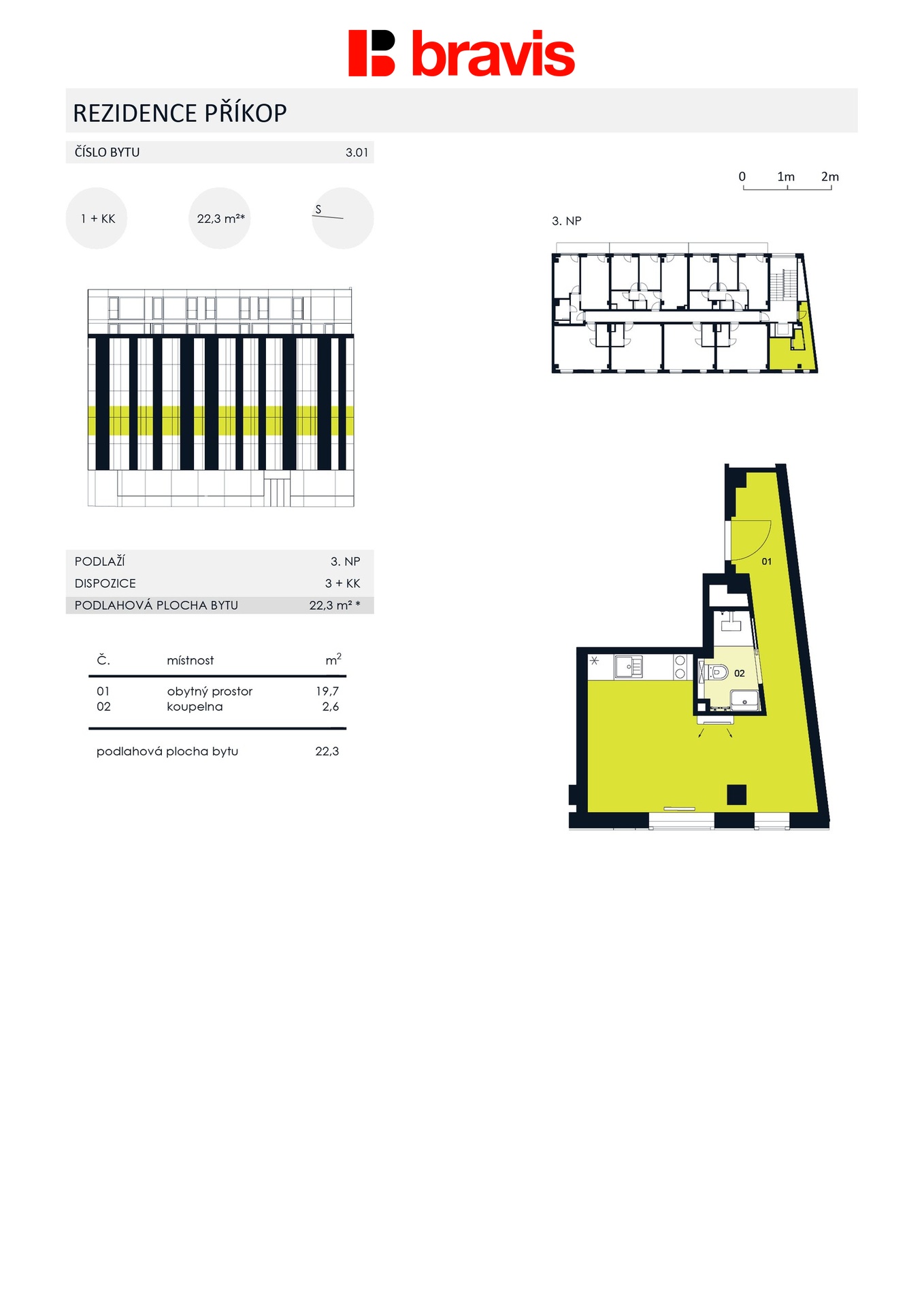 | Dispozice/podlahová plocha: | 1+kk/22 m² |