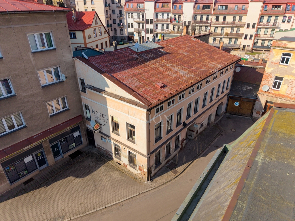 Prodej bytového domu, historická budova hotelu Černý kůň, , vhodné k vybudování až 8. bytů a obchodního prostoru v přízemí, nebo pouze 11 bytů. 5 bytů již zhotoveno hrubou stavbou, tři další ke kompletní výstavbě na prostorné půdě, a zbylé tři v přízemí.Nemovitost se nachází na adrese Ulice Tyršova, Část obce Poříčí, Obec Broumov, okres Náchod představuje atraktivní investiční příležitost v regionu s rostoucím zájmem o pronájmy i turistické rekreace, vhodné pro klienta s vyššími finančními prostředky.