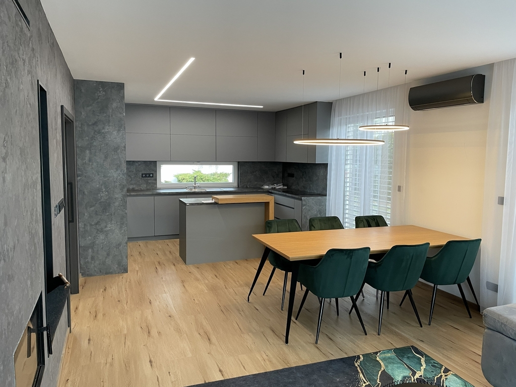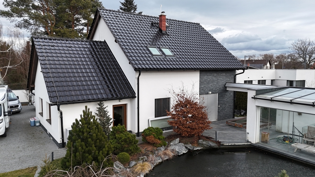 Dům zaujme moderním, jednoduchým designem, promyšlenou dispozicí a nadstandardně upraveným exteriérem s koupacím jezírkem. Ideální volba pro rodinu, která hledá komfortní bydlení v klidném prostředí.