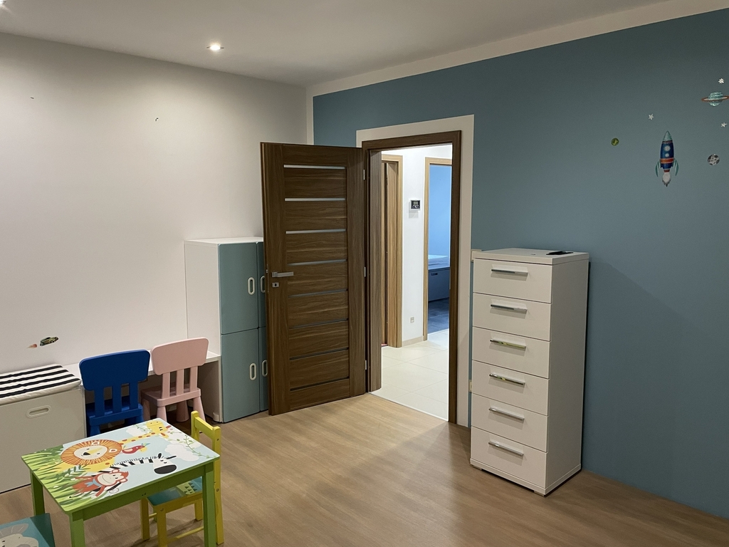 4. moderní, jednoduchý interiér, vestavěné skříně