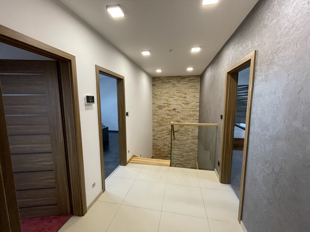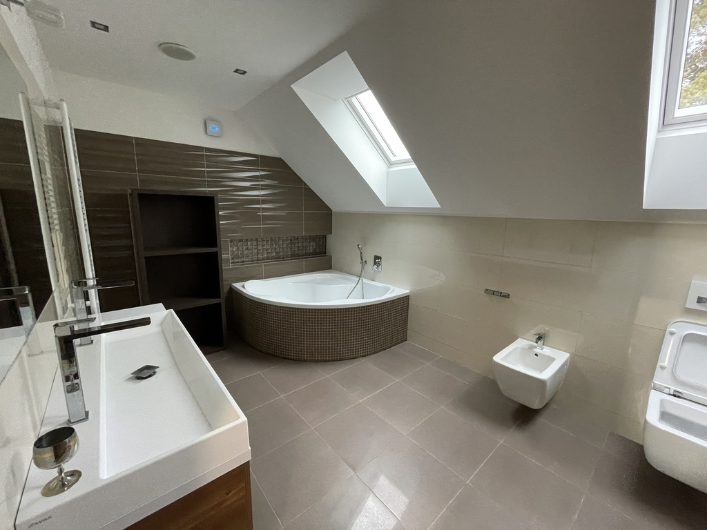 3. patro: 2 dětské pokoje, ložnice se šatnou, velká koupelna (rohová vana + sprchový kout), WC