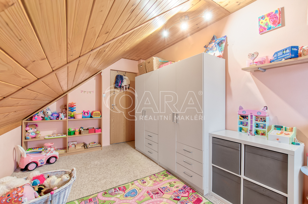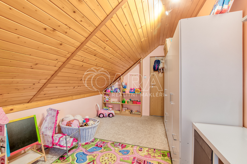 Patro (4+1): Horní podlaží nabízí obývací pokoj, samostatnou kuchyni, tři pokoje, koupelnu, toaletu a půdní prostor. Patro může sloužit jako království pro děti nebo jako klidná domácí kancelář.