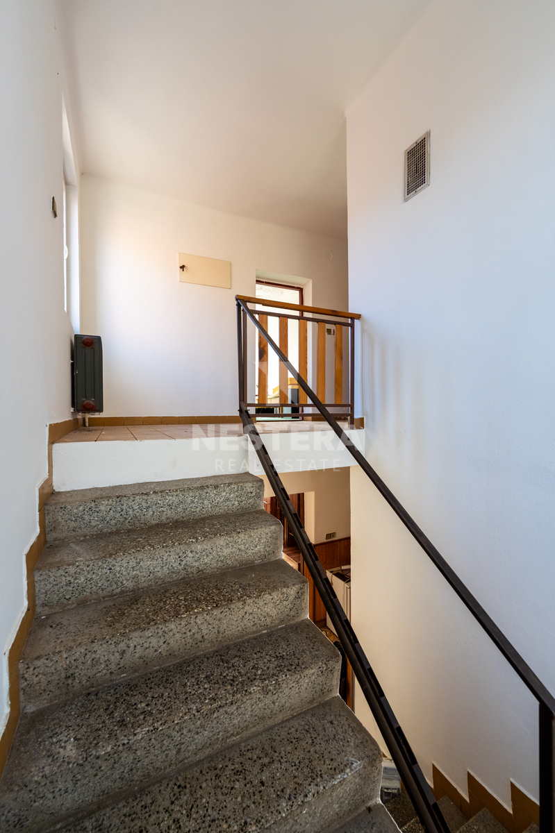Interiér domu je světlý a rozhodně v sobě skrývá potenciál pro vytvoření pěkného a prakticky řešeného bydlení. Všechno zde čeká na nové nápady a moderní pojetí, které propojí původní charakter domu s dnešním stylem života.