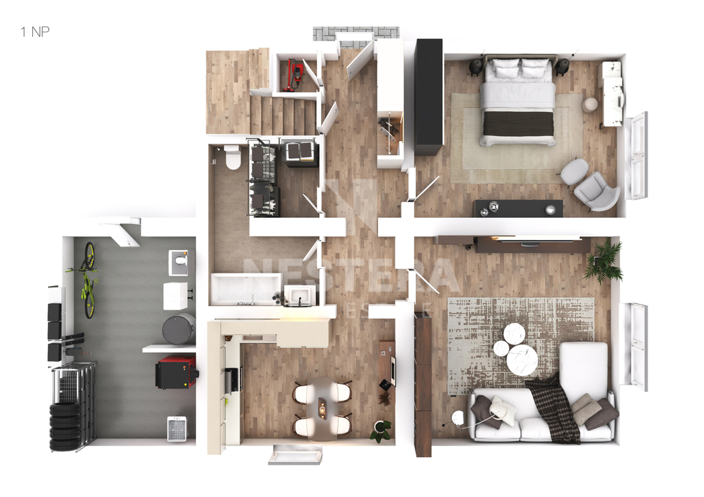 Dům nabízí flexibilní využití – stávající dispozice 5+1 je vhodná pro rodinné bydlení, nicméně dům je koncipován tak, že jej lze velmi jednoduše rozdělit na dvě samostatné bytové jednotky 2+1. Můžete tak vytvořit pohodlné dvougenerační bydlení nebo investiční nemovitost, která bude generovat příjem z pronájmu jednoho či obou bytů.