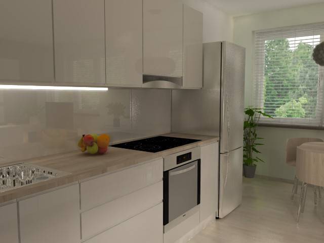 Tento vzdušný byt je vybaven moderní kuchyňskou linkou na míru s velkým úložným prostorem a vestavěnou sklokeramickou deskou, elektrickou troubou, digestoří a velkým osvětlením pracovní desky. Při rekonstrukci byly použity kvalitní materiály. Podlahovou krytinu tvoří koberce a dlažba. Byt má vlastní elektroměr, vodoměr i připojení k internetu.