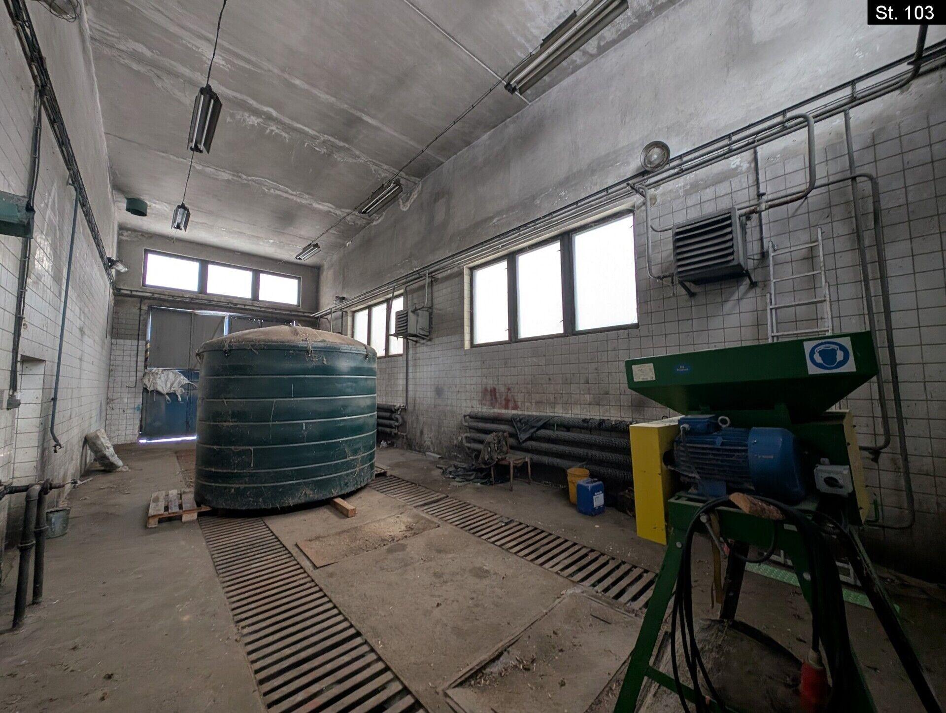- Autoopravárenská hala St. 103 (794 m2) - zděná hala užívaná pro opravy zemědělské a dopravní techniky; 2 montážní kanály v podlaze; v části je původní technologie průjezdné automyčky; 5 x velká vrata; objekt zahrnuje i kanceláře a sociální zázemí.