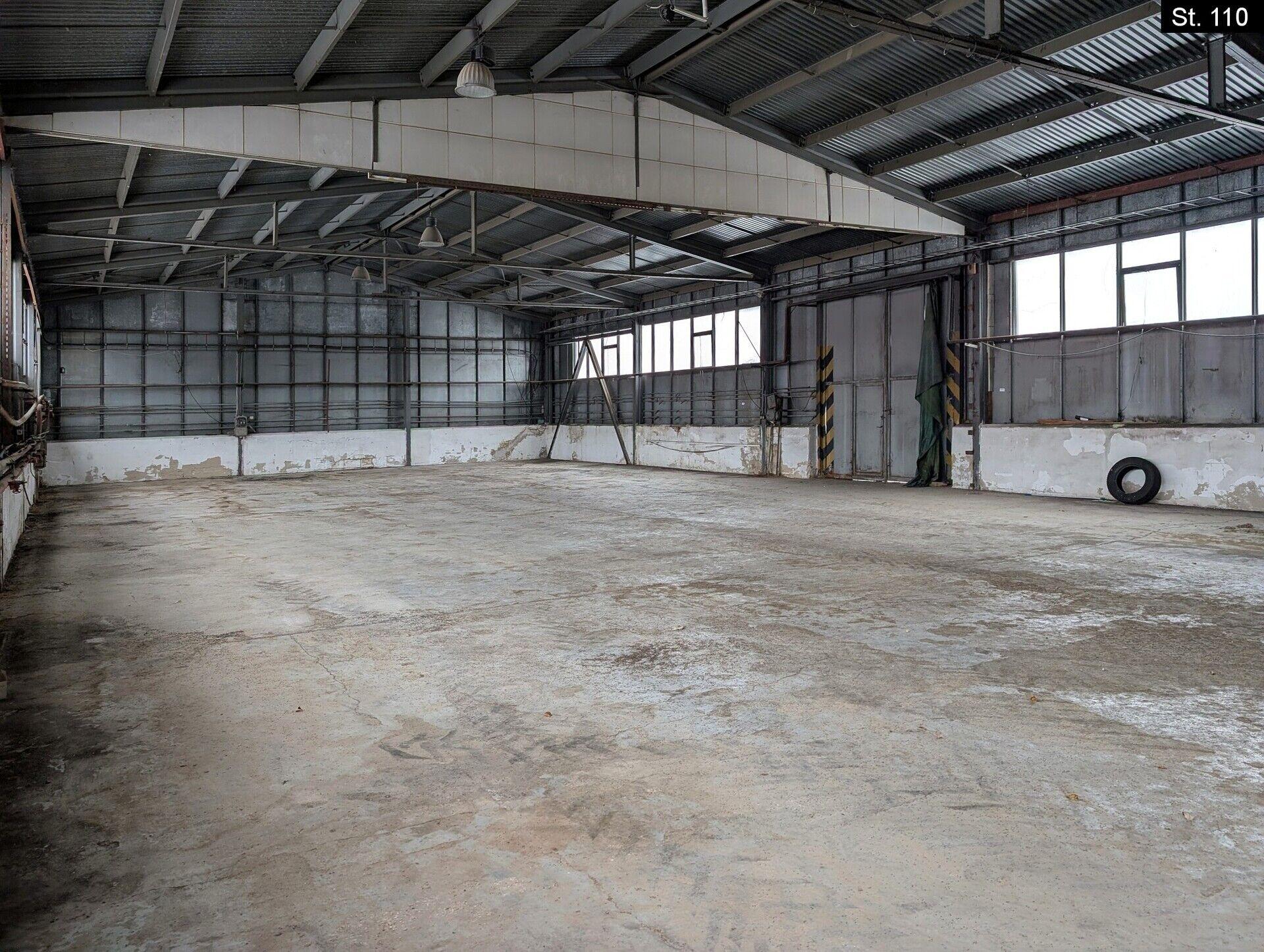 - Skladová hala St. 110 (957 m2) - hala užívaná pro skladování; vestavba kanceláří; ocelová konstrukce, stěny cca do 1 metru výšky vyzděné, v bocích prosvětlovací pásy oken; 4 x velká vrata; nakládací rampa.