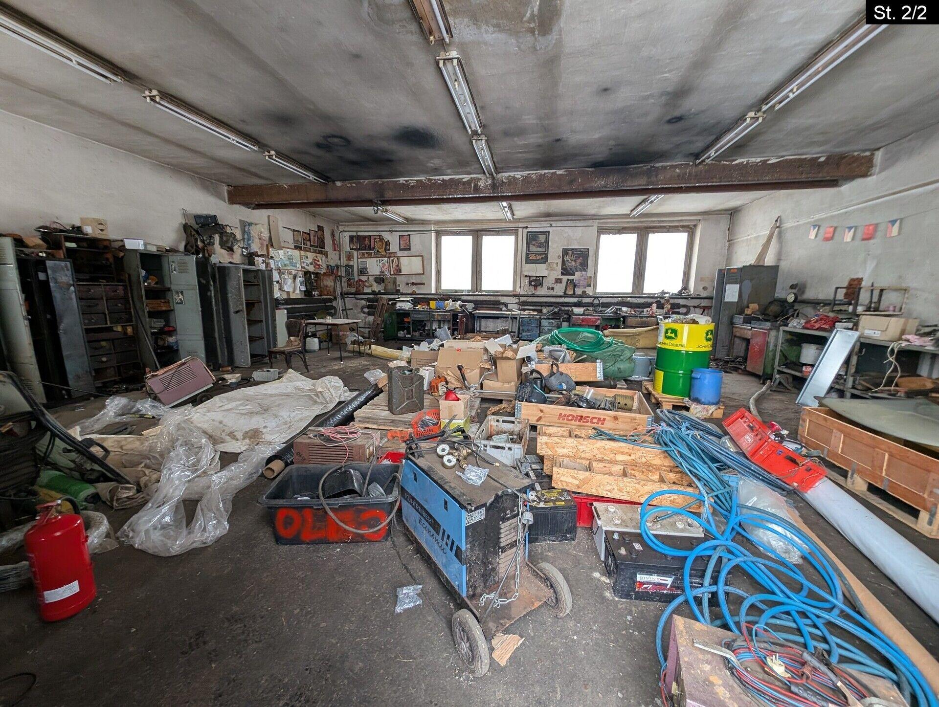 - Budova dílen a skladů St. 2/2 (532 m2) - zděný objekt zahrnuje dílny a sklady; 3 x velká vrata.