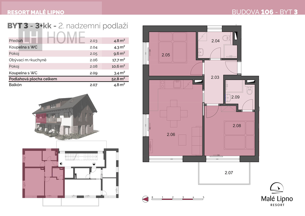 | Dispozice/podlahová plocha: | 3+kk/52 m² |