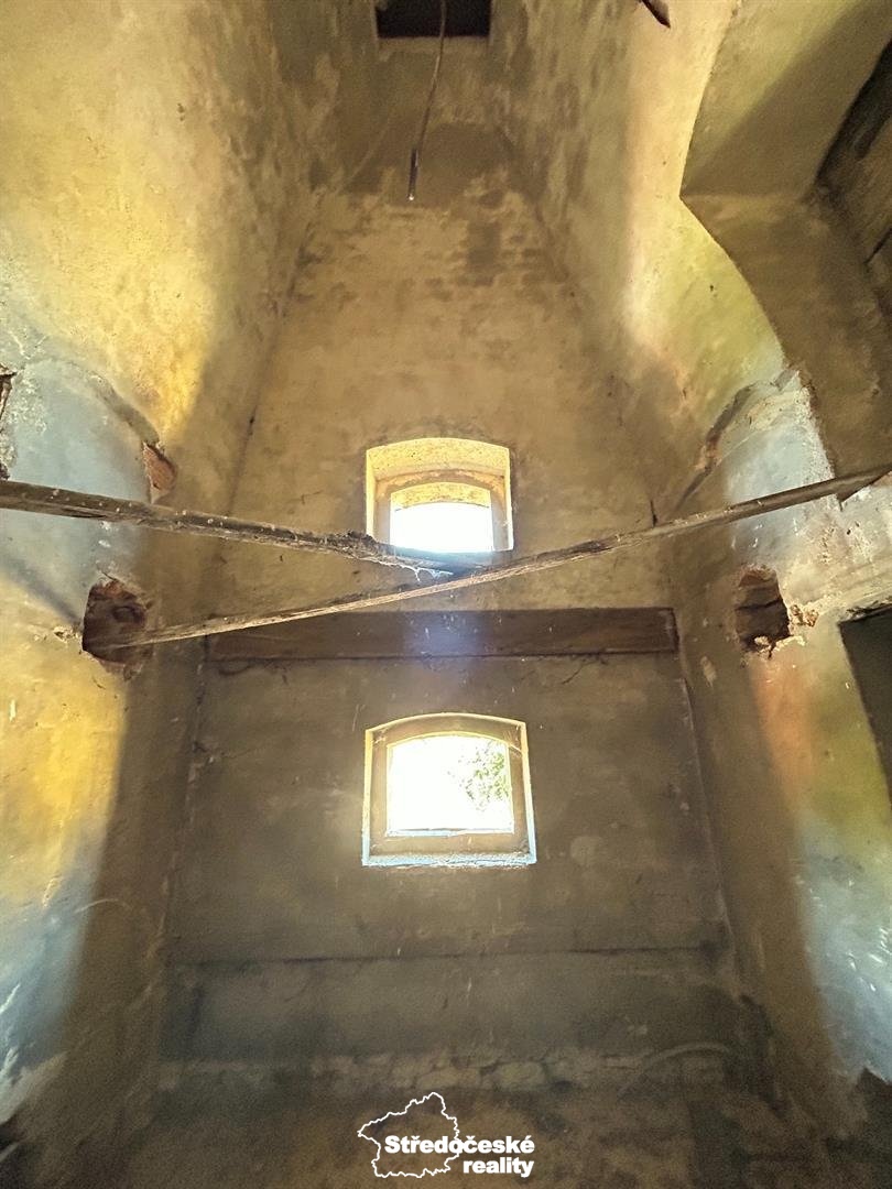 ◦ první část: cca 60 m², nadezdívka 2,2 m, výška ke hřebeni 5 m, 8 oken