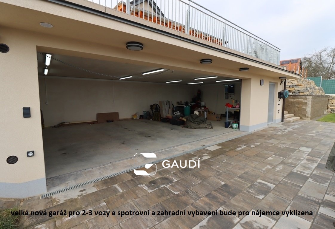 Dům lze přirovnat k luxusnímu bungalovu, zasazenému do jihovýchodního svahu. Pod domem je nově vybudovaná velká garáž o zastavěné ploše 97m2, do které lze zaparkovat 2-3vozy a která nabízí i velké skladovací prostory pro sportovní potřeby, nářadí apd…