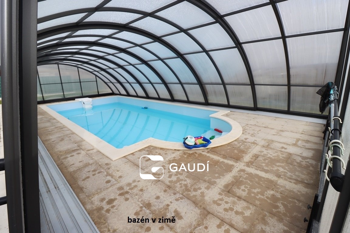 Na zahradě lze využívat nový bazén 4x8m se slanou vodou, s posuvným zakrytím. O provoz bazénu a částečnou údržbu zahrady je ochoten se starat majitel.