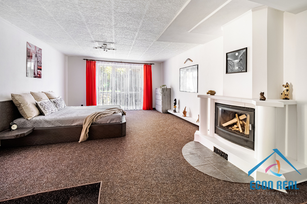 Dům o stávající dispozici 3+1 (otevřené dispozice) s možností rozšíření do půdní vestavby – dnes útulný, ač starší dům s plně vybavenou kuchyní, jídelnou, ložnicí, dvěma koupelnami, společenskou místností se saunou, obývacím pokojem s krbem, který navozuje atmosféru horské chaty. Zítra? Dům lze rozšířit o výstavbu dalších 3 pokojů v podkroví, kde je již příprava.