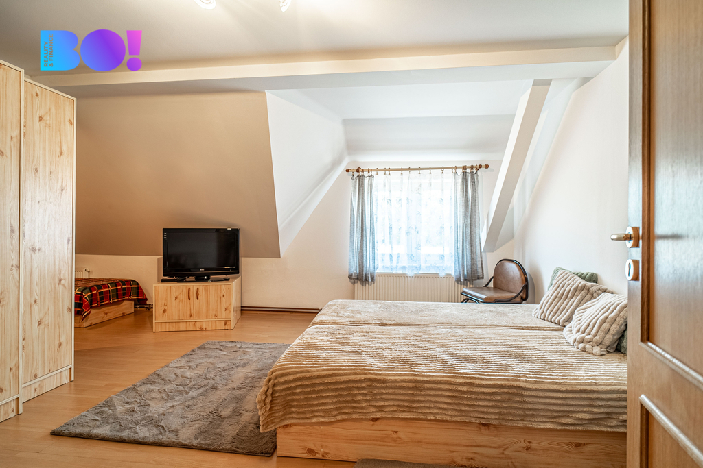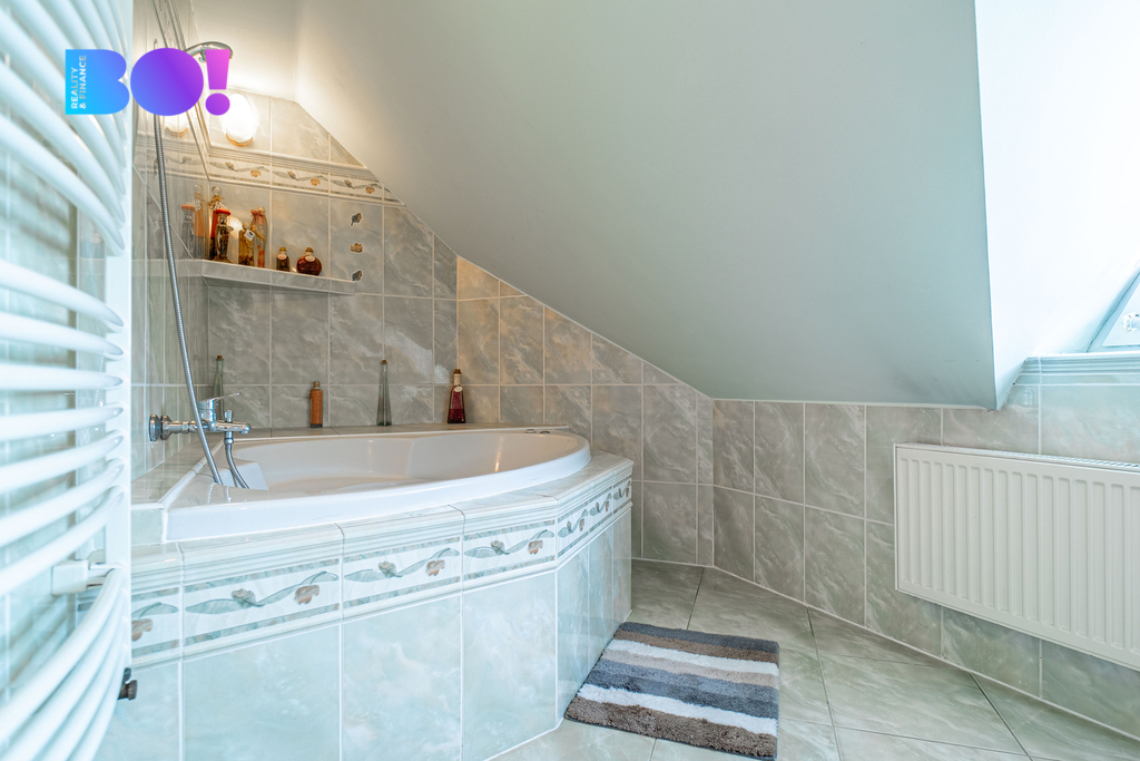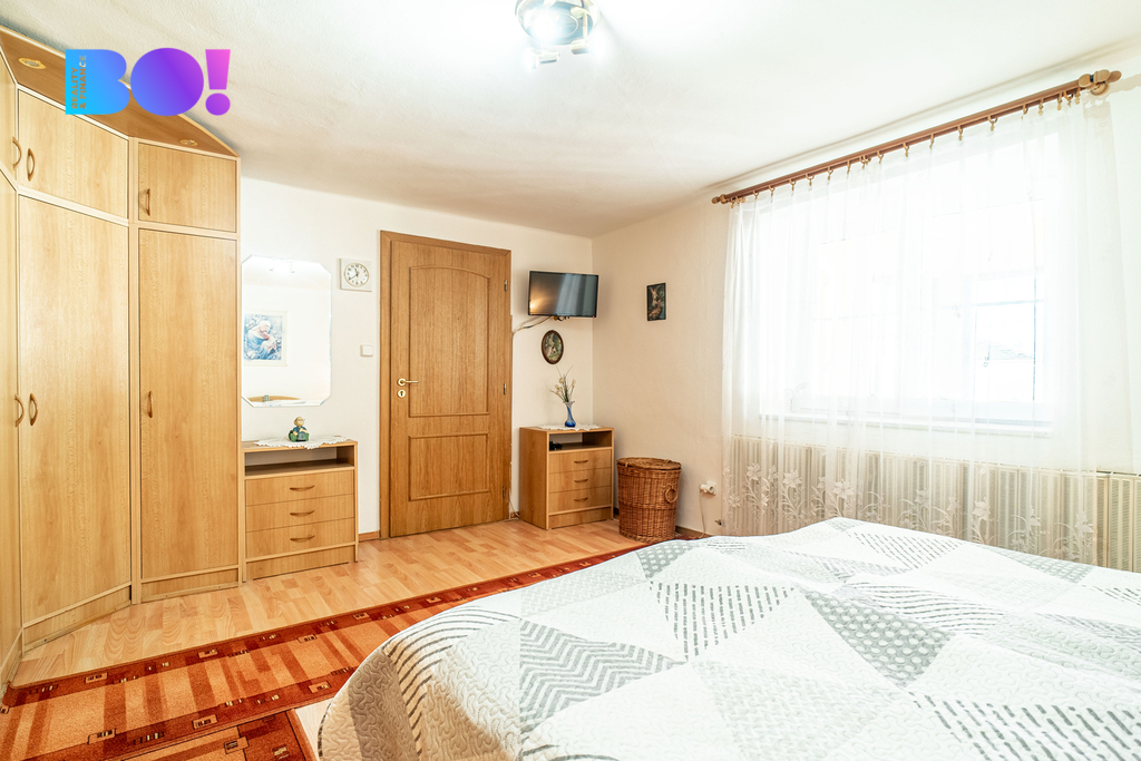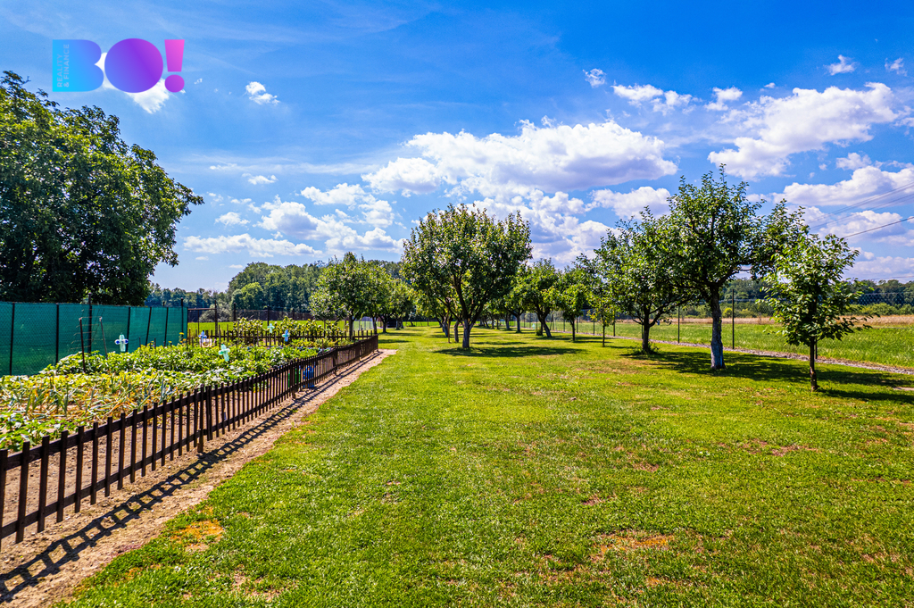 Na rozlehlé zahradě dále najdete pergolu s posezením, dílnu, skleník a dřevník pro uskladnění dřeva. Zadní část zahrady tvoří zeleninová zahrádka a ovocný sad se vzrostlými stromy – ideální pro milovníky přírody a pěstování.