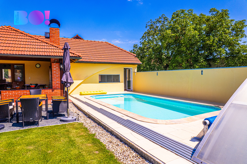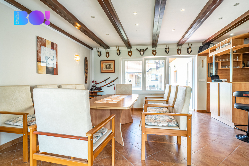Součástí objektu je také garáž se sekčními vraty a venkovní posezení s grilem a udírnou.