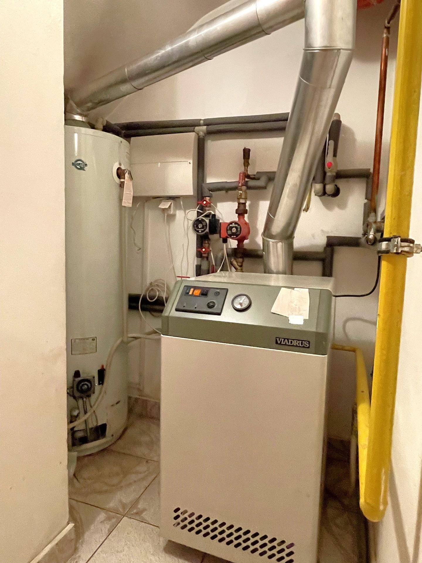 Sítě a vytápění: Obecní vodovod i kanalizace, elektřina 230/400 V. Teplo domova zajišťuje úsporný plynový kotel.