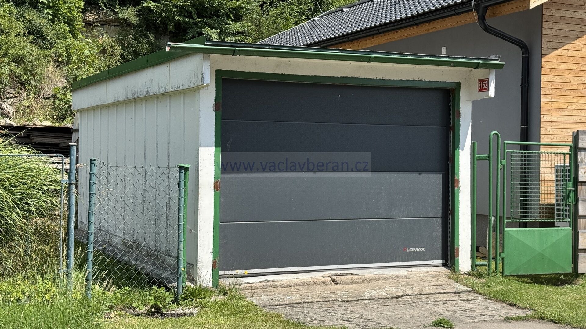 Garáž s elektrickými vraty Lomax a wall boxem pro nabíjení elektro auta