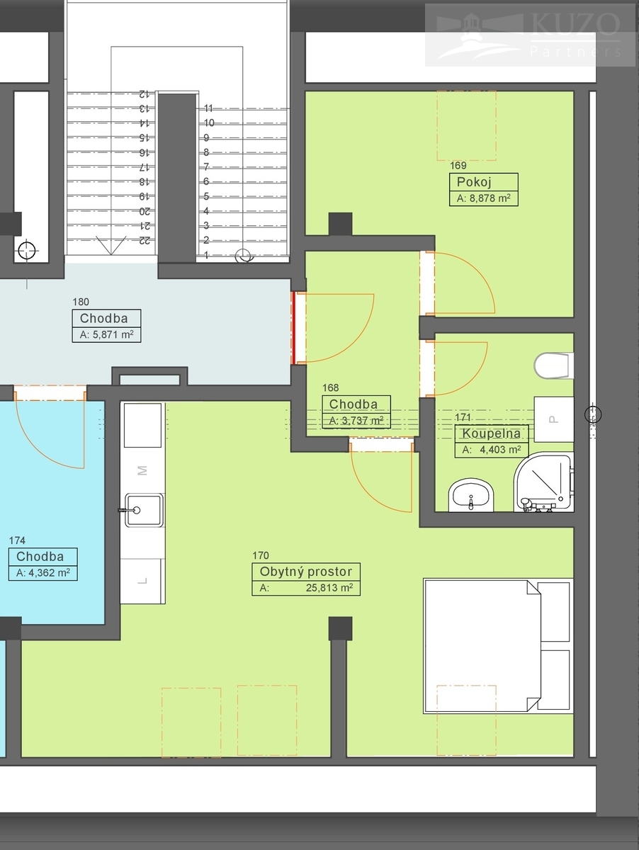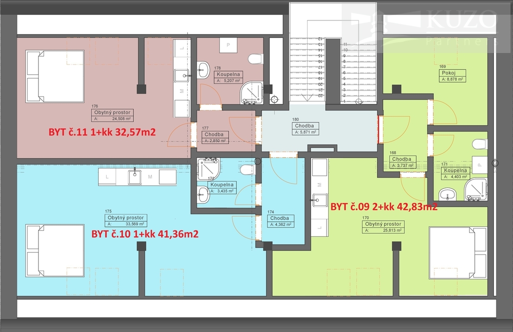| Dispozice/podlahová plocha: | 2+kk/43 m² |