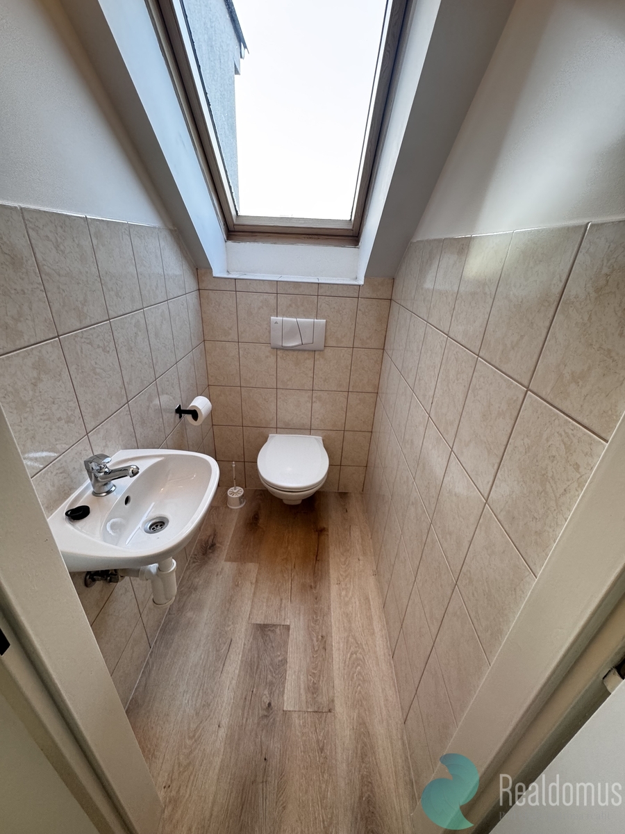 Byt disponuje komfortní koupelnou s dostatkem prostoru, vybavenou vanou se sprchovou zástěnou, dvěma umyvadly a samostatným WC. Kuchyň je vybavena novým sporákem a novou lednicí. Ve všech oknech jsou instalovány žaluzie, ve střešních oknech navíc rolety.