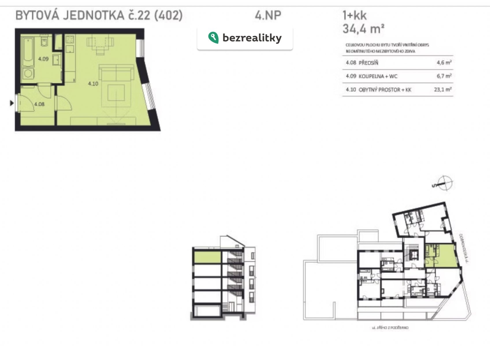 | Dispozice/podlahová plocha: | 1+kk/34 m² |