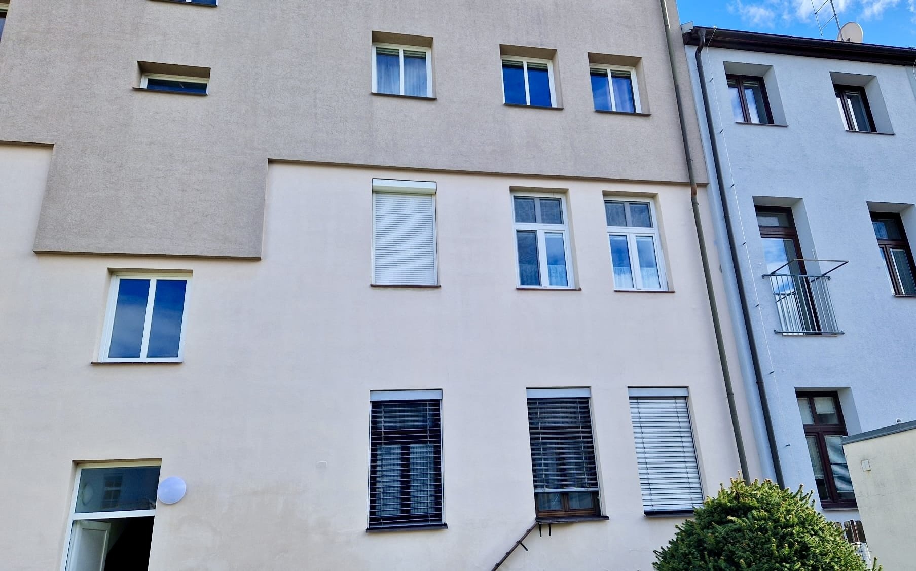Bytová jednotka se nachází v udržovaném čtyřpodlažním domě. Na patře, kde se jednotka nachází jsou umístěny pouze dva byty, což zvyšuje komfort klidného bydlení. Dům je napojen na městskou vodovodní a kanalizační síť, zaveden el. proud a plyn. Na domě proběhli v průběhu let tyto hlavní rekonstrukční práce – fasáda, zateplení, výměna oken, střecha. Za domem se nachází příjemná uzavřená zahrada, která poskytuje klidné posezení. K dobrému chodu domu přispívá kvalitně fungující SVJ.