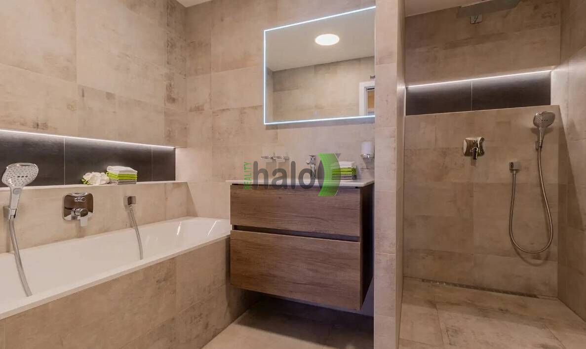 Koupelna (vana i sprchový kout) a WC s vybavením VILLEROY & BOCH a HANS GROHE