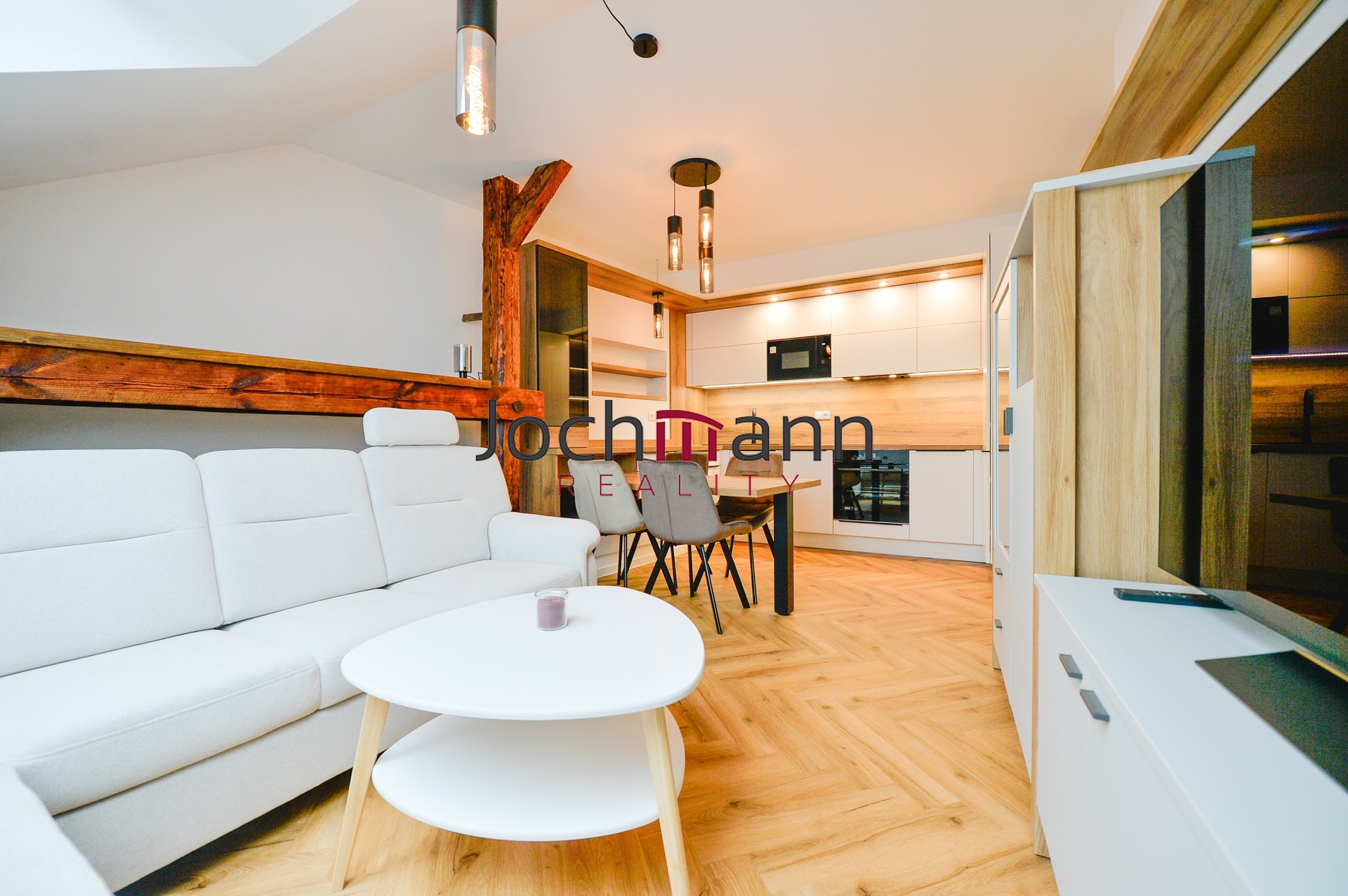 V samotném srdci Českých Budějovic, jen pár kroků od hlavního náměstí se nachází precizně zrekonstruovaný, kompletně a luxusně vybavený byt 3+kk s možností využívání soukromé zahrady a parkovacím stáním v uzavřeném a klidném vnitrobloku. Vnitřní dispozice bytu nabízí vstupní halu s vestavěnou skříní, luxusně zařízenou koupelnu se sprchovým koutem - vybavenou pračkou a sušičkou, dobře řešenou hlavní obytnou místnost spojenou s kompletně vybavenou kuchyňskou linkou, podkrovní pokoj a v neposlední řadě pak klidnou ložnici s velkou postelí. Celý byt je kompletně vybavený a připravený pro nového nájemce tak, aby nemusel řešit náročné stěhování a pořizování vlastního nábytku. V rámci pronájmu je dále možné užívat krásnou zahradu ve vnitrobloku, kde každý nájemník může posedět v zastřešené terase, vypěstovat něco dobrého na vyvýšených záhonech či naplánovat společné grilování.