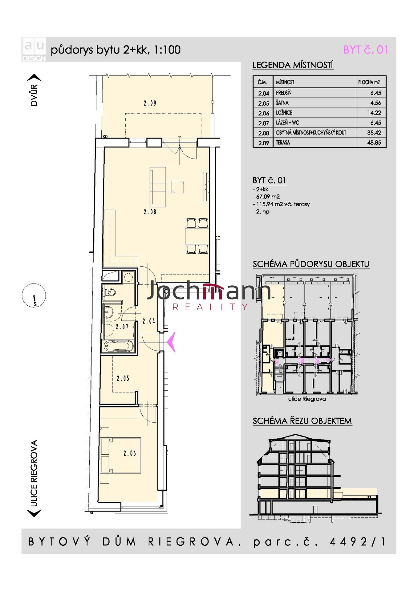 | Dispozice/podlahová plocha: | 2+kk/67 m² |