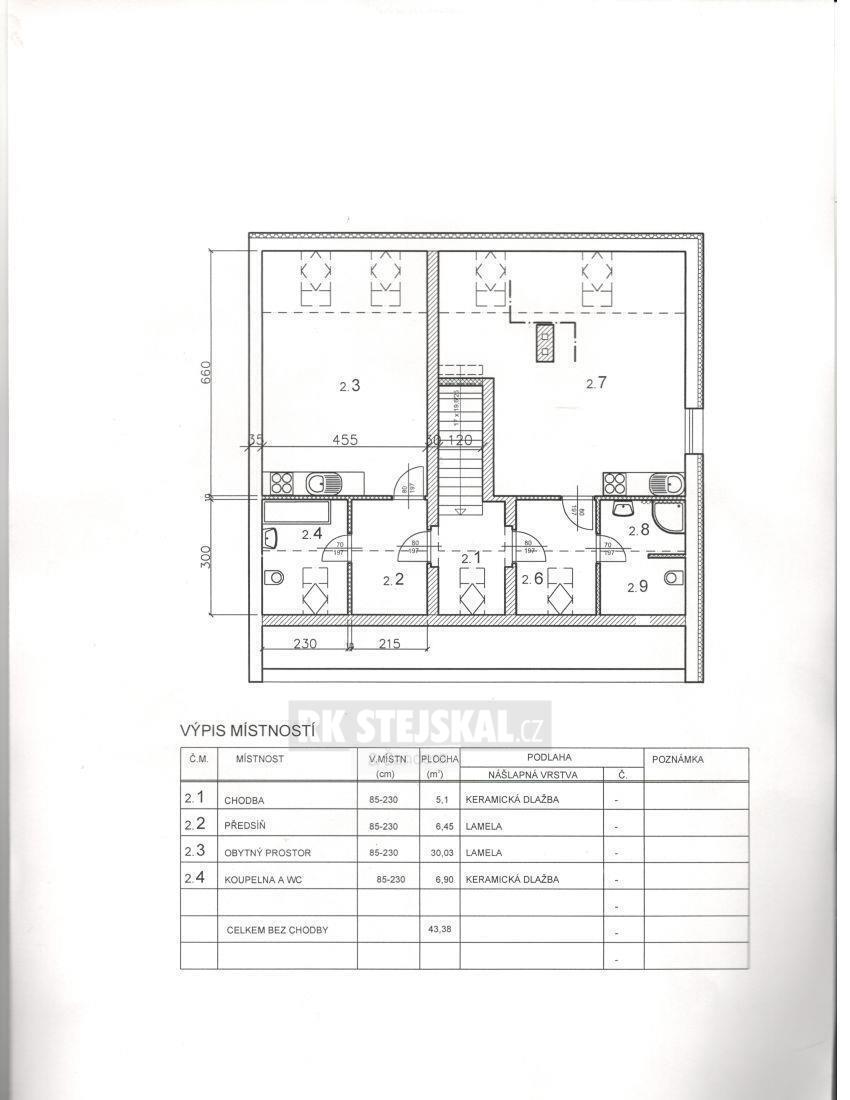| Dispozice/podlahová plocha: | 1+kk/43 m² |