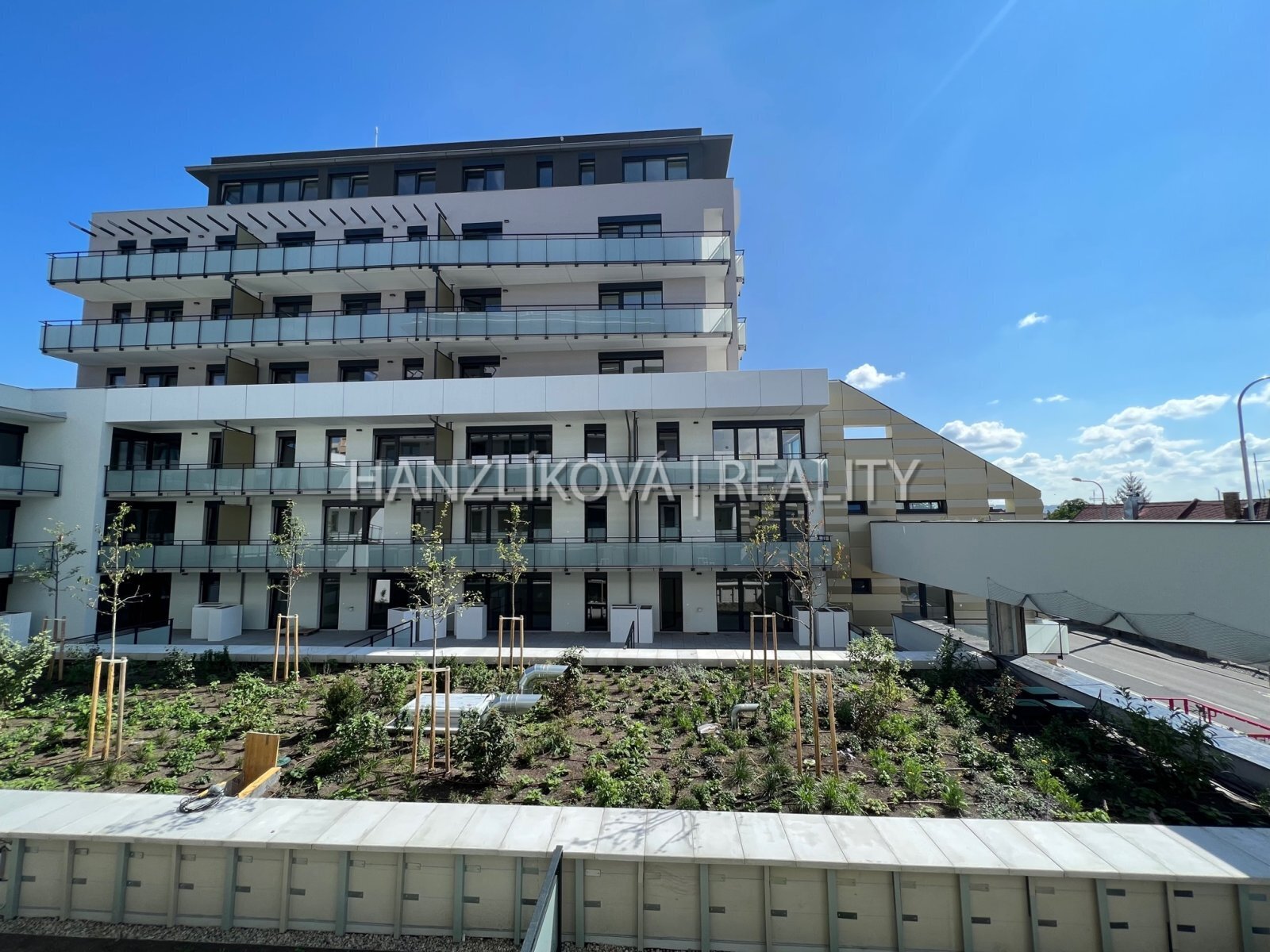 Exkluzivně nabízíme k pronájmu zcela novou bytovou jednotku o dispozici 1+kk, která se nachází ve třetím patře novostavby bytového domu v ulici Oskara Nedbala v Českých Budějovicích. Prostorný byt o výměře 50,7 m2 + terasa 12,6 m2 je orientovaný do vnitrobloku na východ a skládá se z těchto místností : prostorná chodba, kde jsou vestavné skříně, botník a věšák, koupelna se sprchovým koutem, WC, umyvadlo a koupelnový nábytek, hlavní obytná místnost, kde je kuchyňská linka včetně spotřebičů, dvoupostel včetně matrací, křeslo, komoda. Z hlavní místnosti je vstup na terasu o výměře 12.6 m2, kde je posezení ( stůl a dvě křesla). K bytu náleží vyhrazené garážové stání umístěné v suterénu domu. Inteligentní zařízení Loxone ovládá zónovou regulaci topení, zprostředkuje přehled aktuální spotřeby energií, má přístupový systém videovrátného a kódové klávesnice pro pohyb po budově ( ovládací tablet je umístěný v obývacím pokoji). Bytový dům se nachází na rohu ulic Oskara Nedbala a Václava Talicha v širším centru města s výbornou dostupností a veškerou občanskou vybaveností v těsné blízkosti. V docházkové vzdálenosti se nachází nový relaxační park.