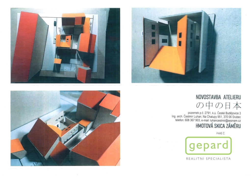 Celková plocha stavebního pozemku je 241 m2 a vlastníkem a zároveň zpracovatelem záměru a projektu byla již zpracována projektová dokumentace k uvedenému, včetně souhlasných stanovisek, přípojek (voda, plyn, elektro, kanalizace), smluv a vyjádření potřebných k následnému vydání stavebního povolení, naposledy - Kladné závazné stanovisko se stavebním záměrem – atelier (víceúčelová stavba) Magistrát města České Budějovice, odbor územního plánování.