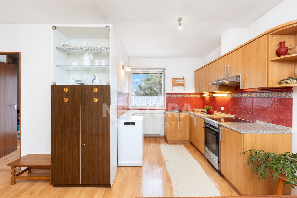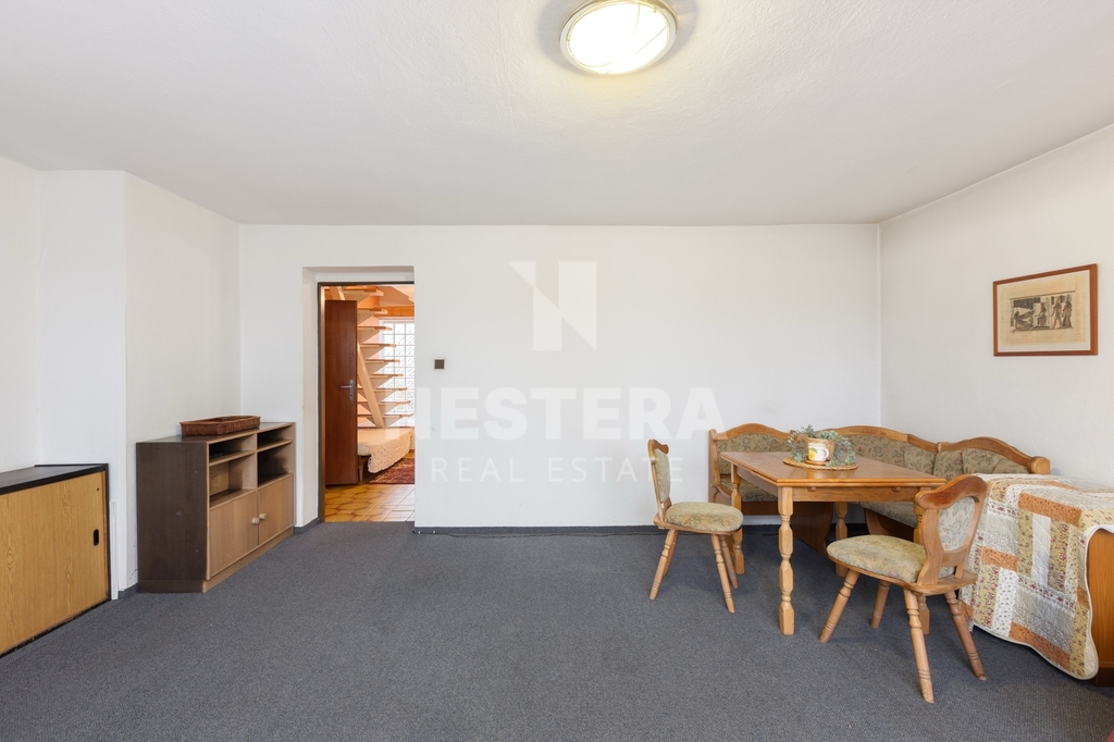 Interiér domu je postarší, najdete však zde i hodnotný kvalitní nábytek. Drobnou rekonstrukcí však z tohoto interiéru vykouzlíte hezké a praktické bydlení.