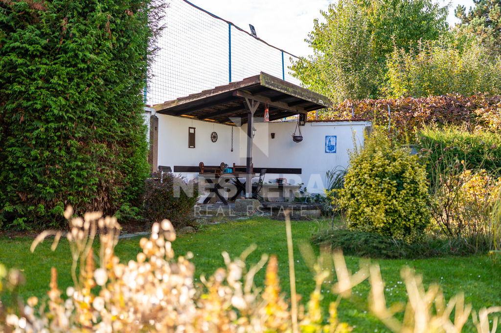 Na zahradě se nachází pergola pro posezení v naprostém soukromí, terasa, a také menší zděný domek, který lze využít jako dílnu, sklad nebo je možné jej zrekonstruovat na samostatný vejminek, ateliér či saunu – záleží jen na přání nového majitele.