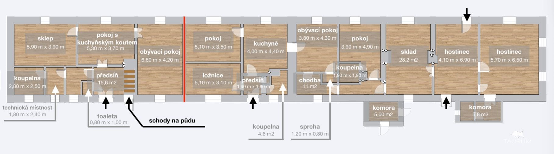 Užitná plocha (byty + hostinec): 280 m2