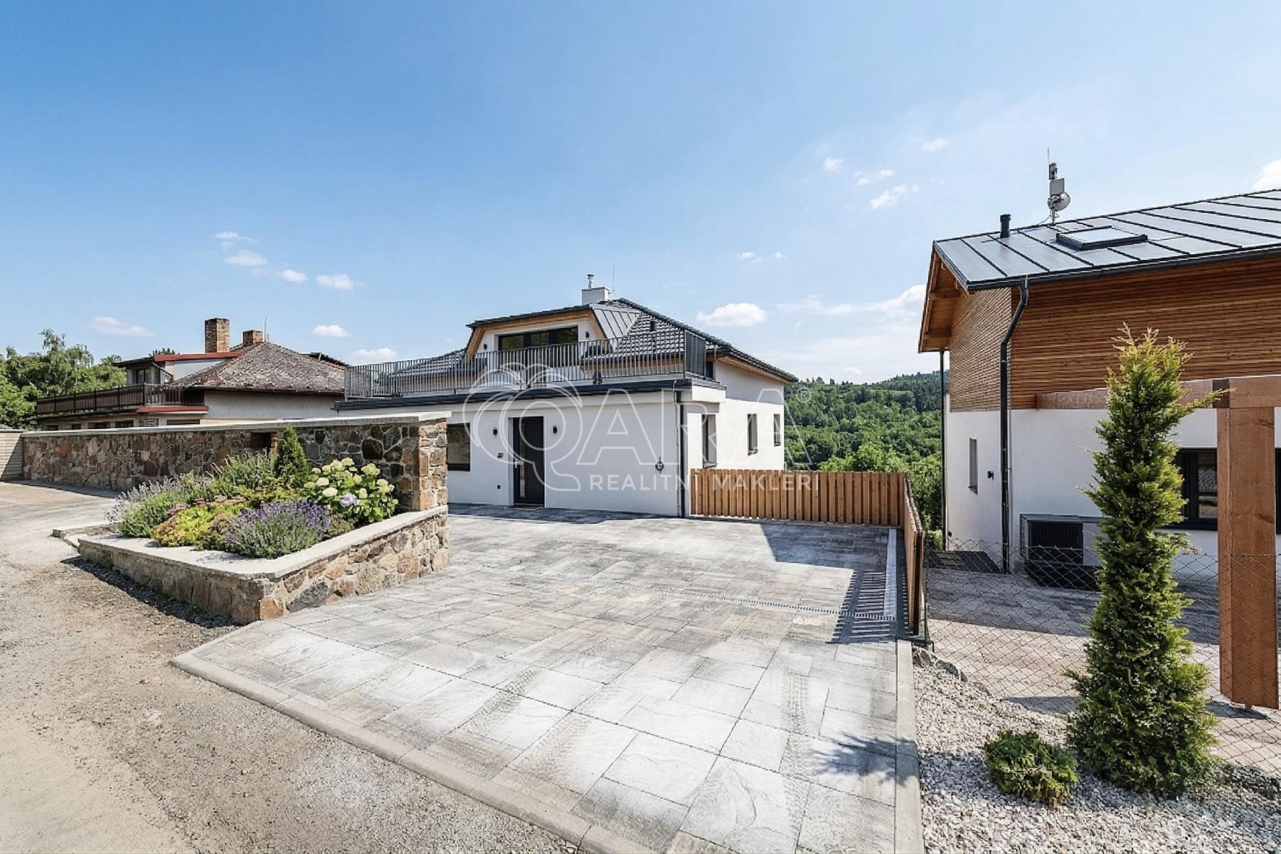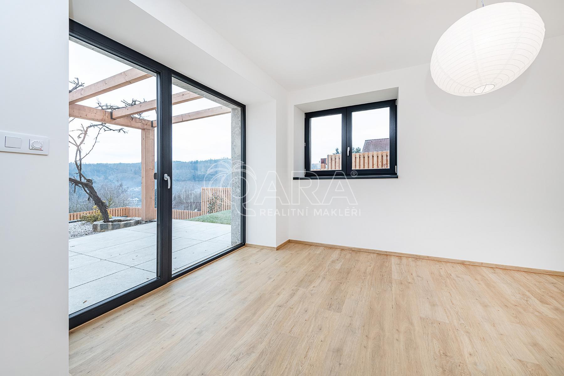 i duši. Přízemí domu zdobené přírodním travertinem, dubové schodiště a sedmikomorová okna, která dovnitř propouštějí jen ticho a světlo, to vše tvoří harmonický celek připravený pro vaše nové kapitoly.