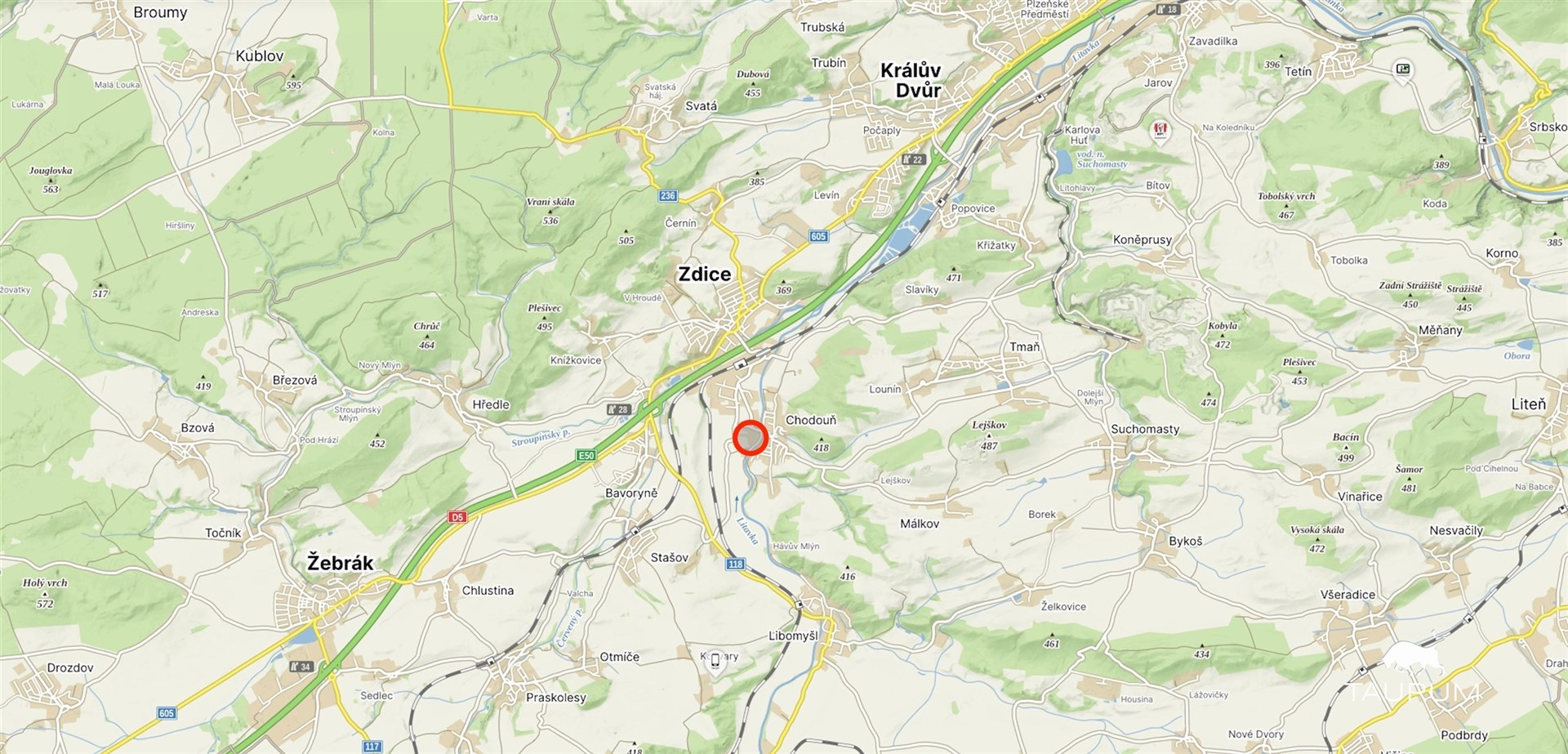 Chodouň je obec v okrese Beroun ve Středočeském kraji, asi 10 km jihozápadně od Berouna. Strategická poloha blízkosti města Beroun a dobrá dostupnost do Prahy činí tuto lokalitu zajímavou pro lidi, kteří chtějí bydlet v klidném prostředí, ale zároveň mít blízko k velkoměstům. Atraktivitu lokality zvyšuje blízkost přírody a možnost rekreačních aktivit.