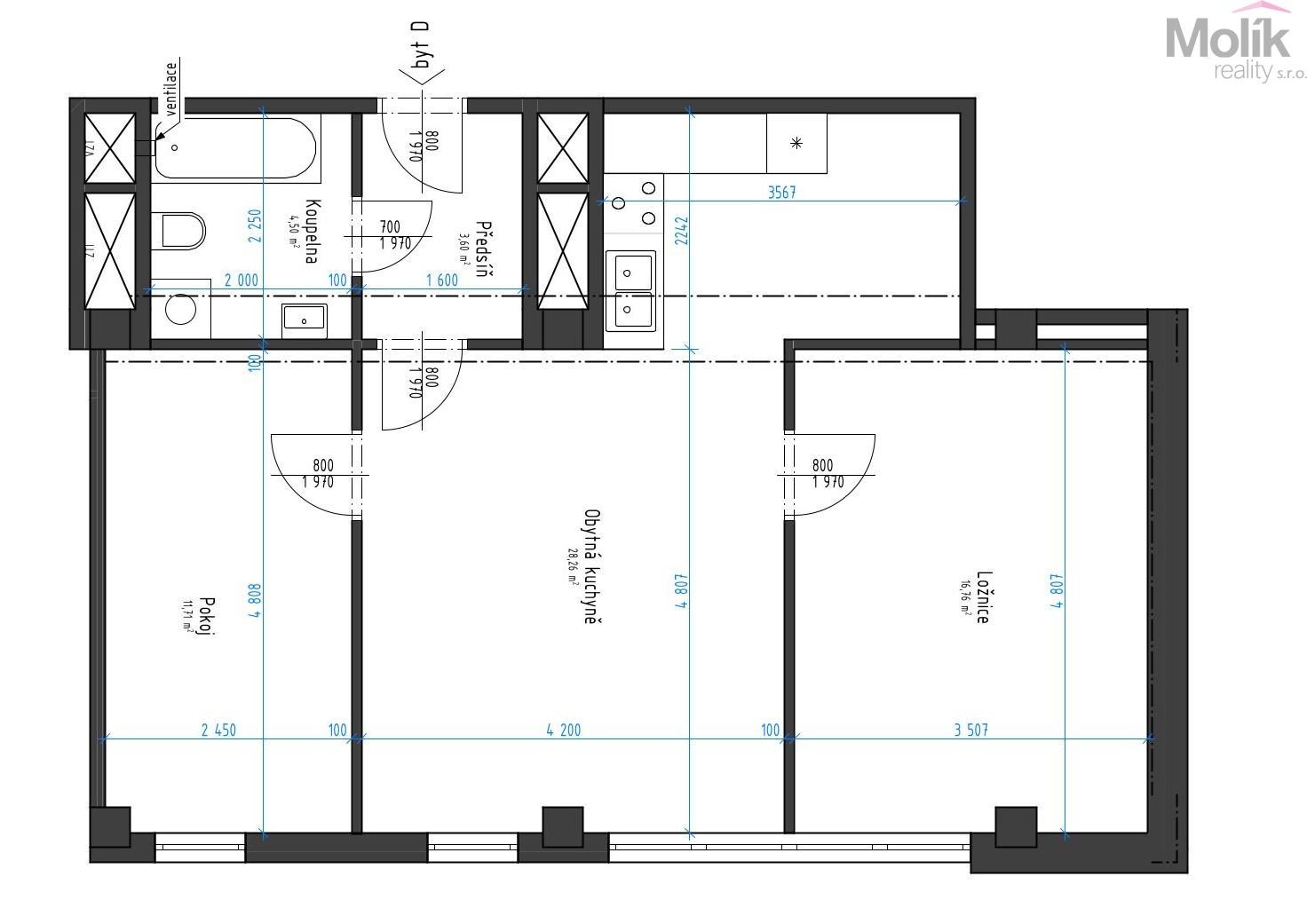 Nabízíme k pronájmu atraktivní, nově zrekonstruovaný byt o dispozici 3+kk a celkové výměře 65 m and sup2;, situovaný v centru města Chomutov.