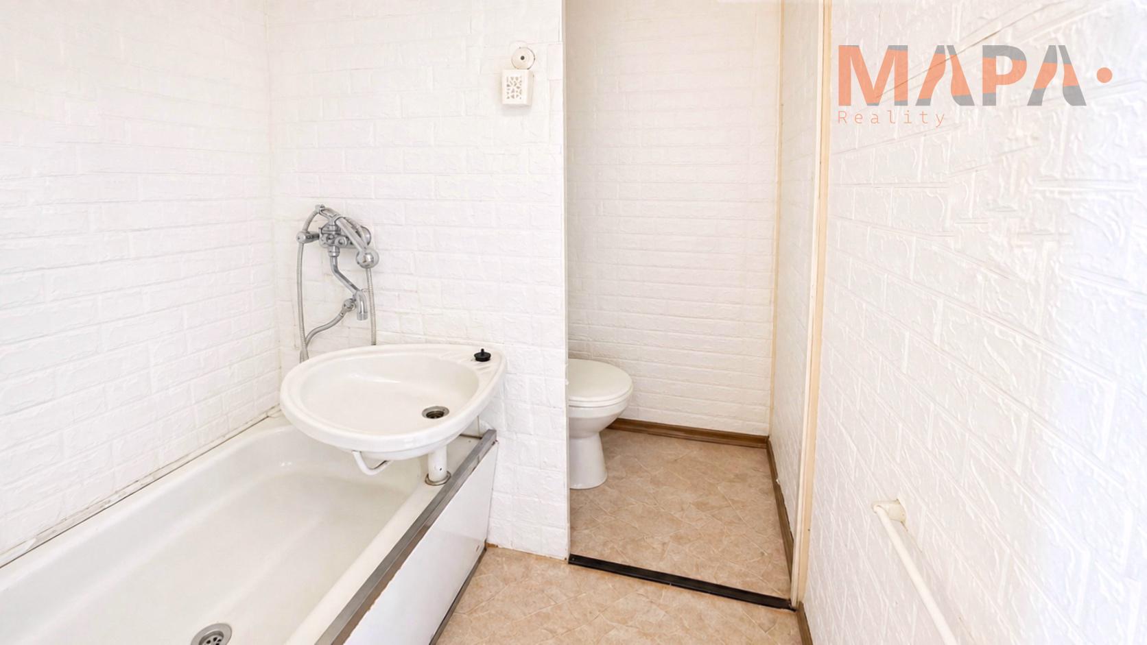Součástí tohoto bytu po částečné rekonstrukci je koupelna s vanou, WC a kuchyňská linka.