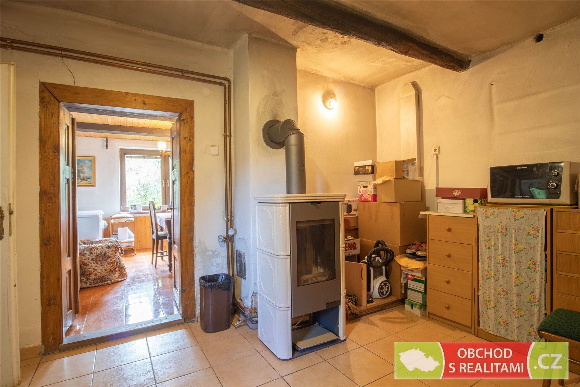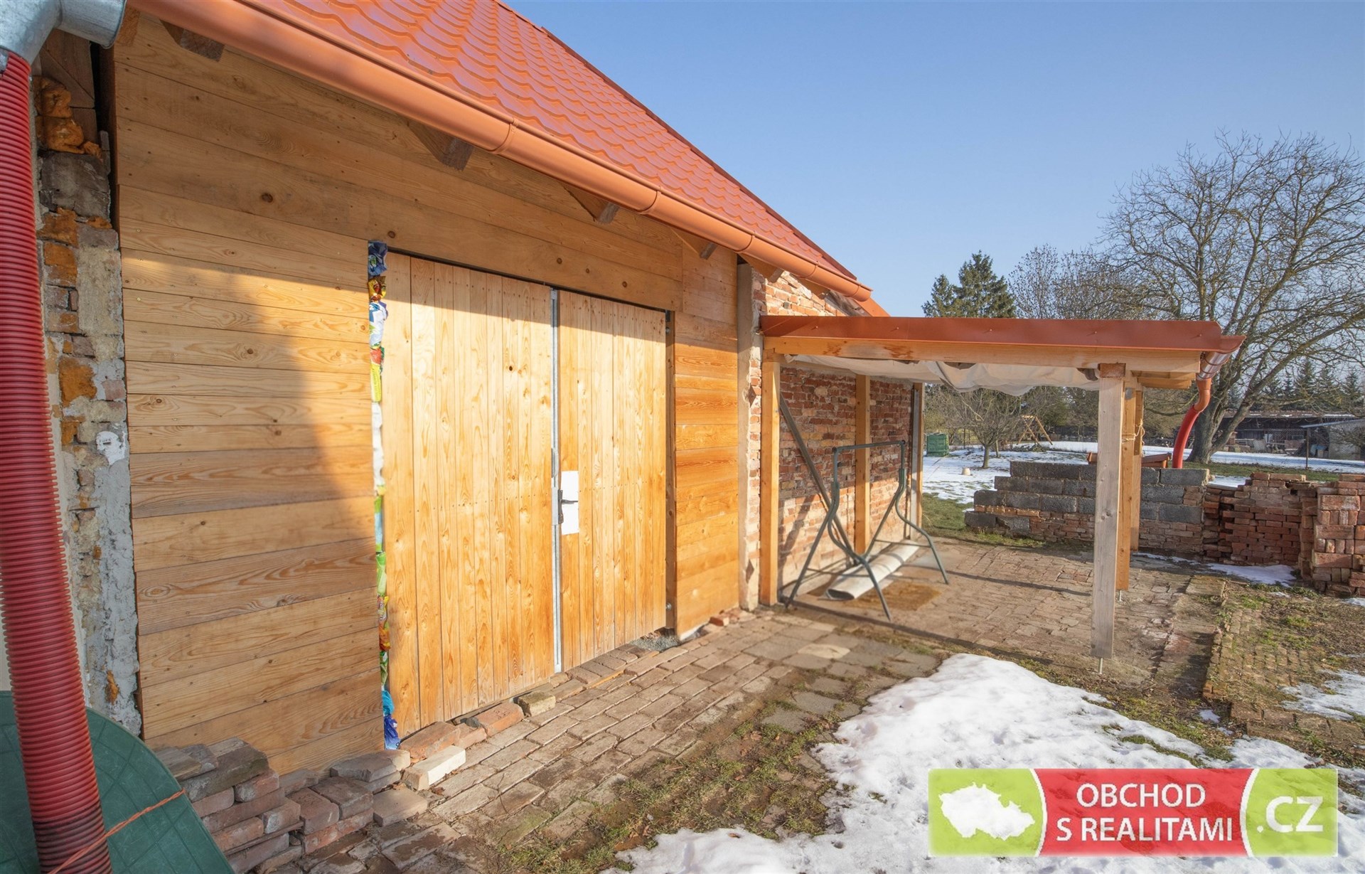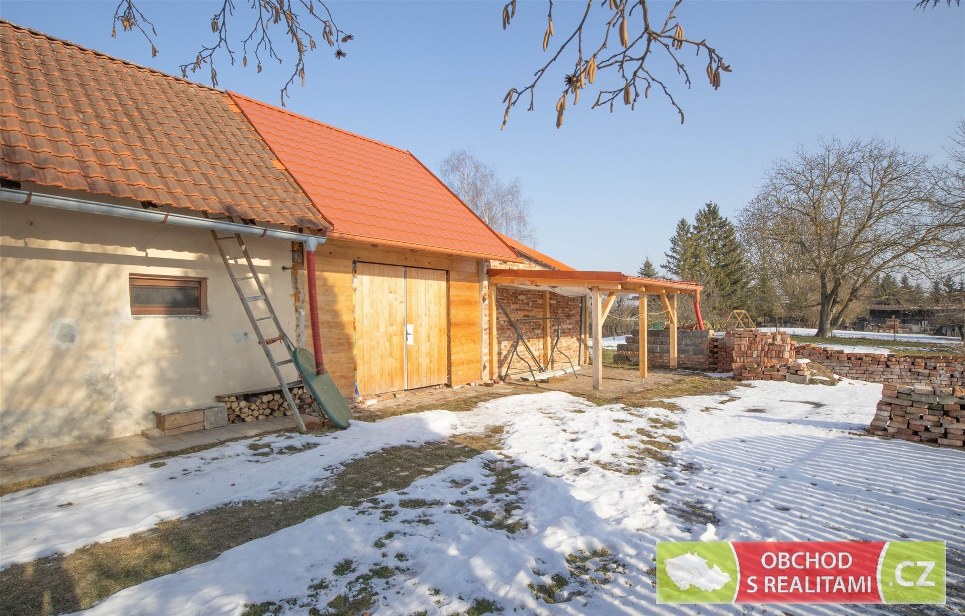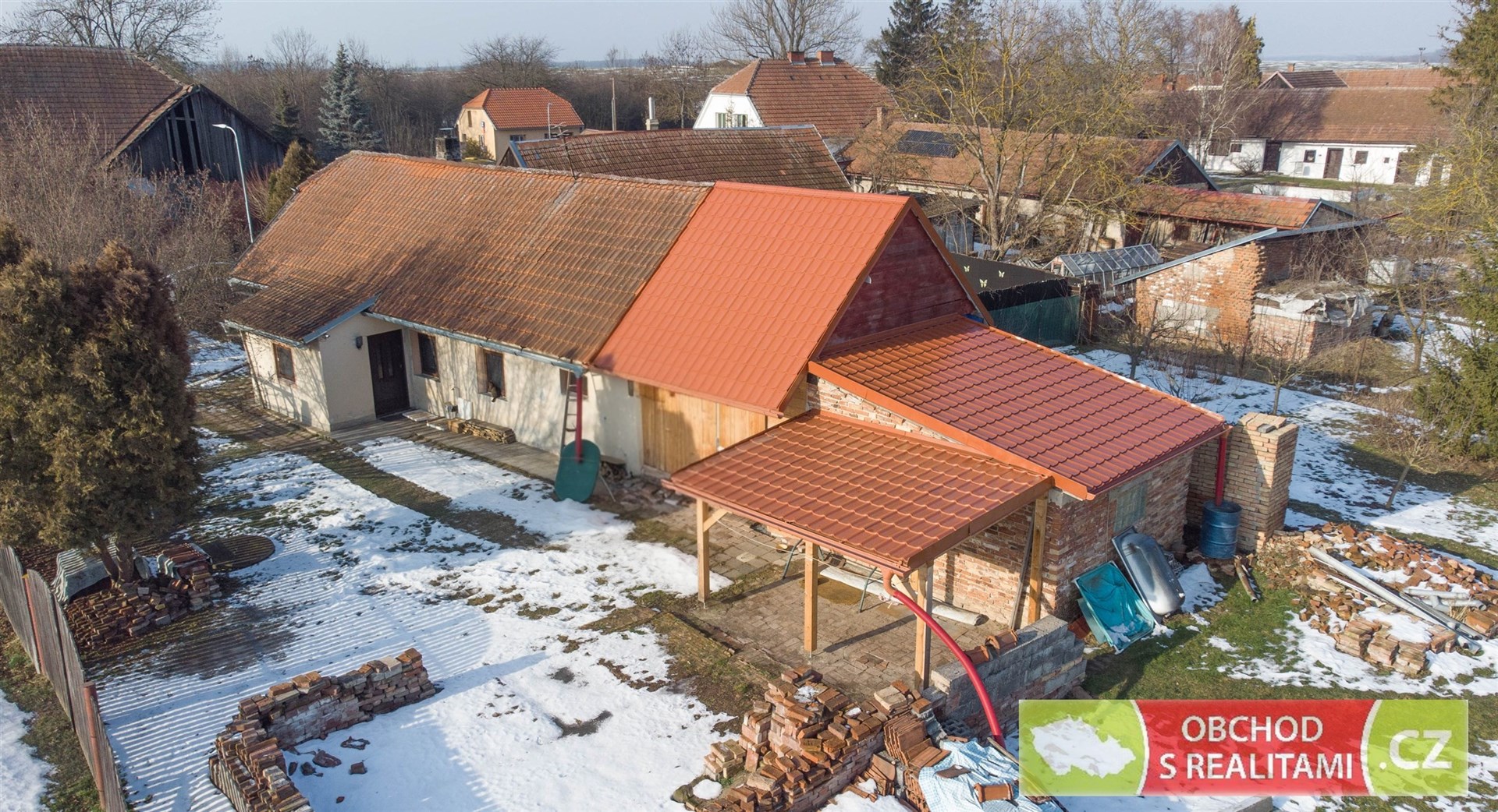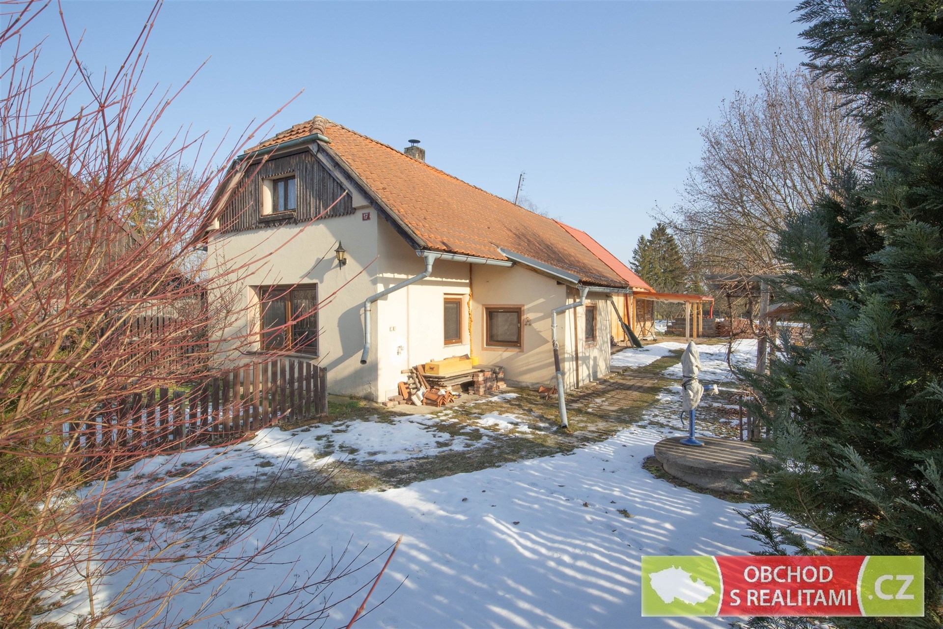 Rodinný dům nabízí dispozici 2+1, malý sklep, volnou půdu (dosud bez vestavby pokojů), stodolu s velkými vraty (například možnost parkování nebo skladování), velkou dílnu a venkovní kryté parkovací stání.
